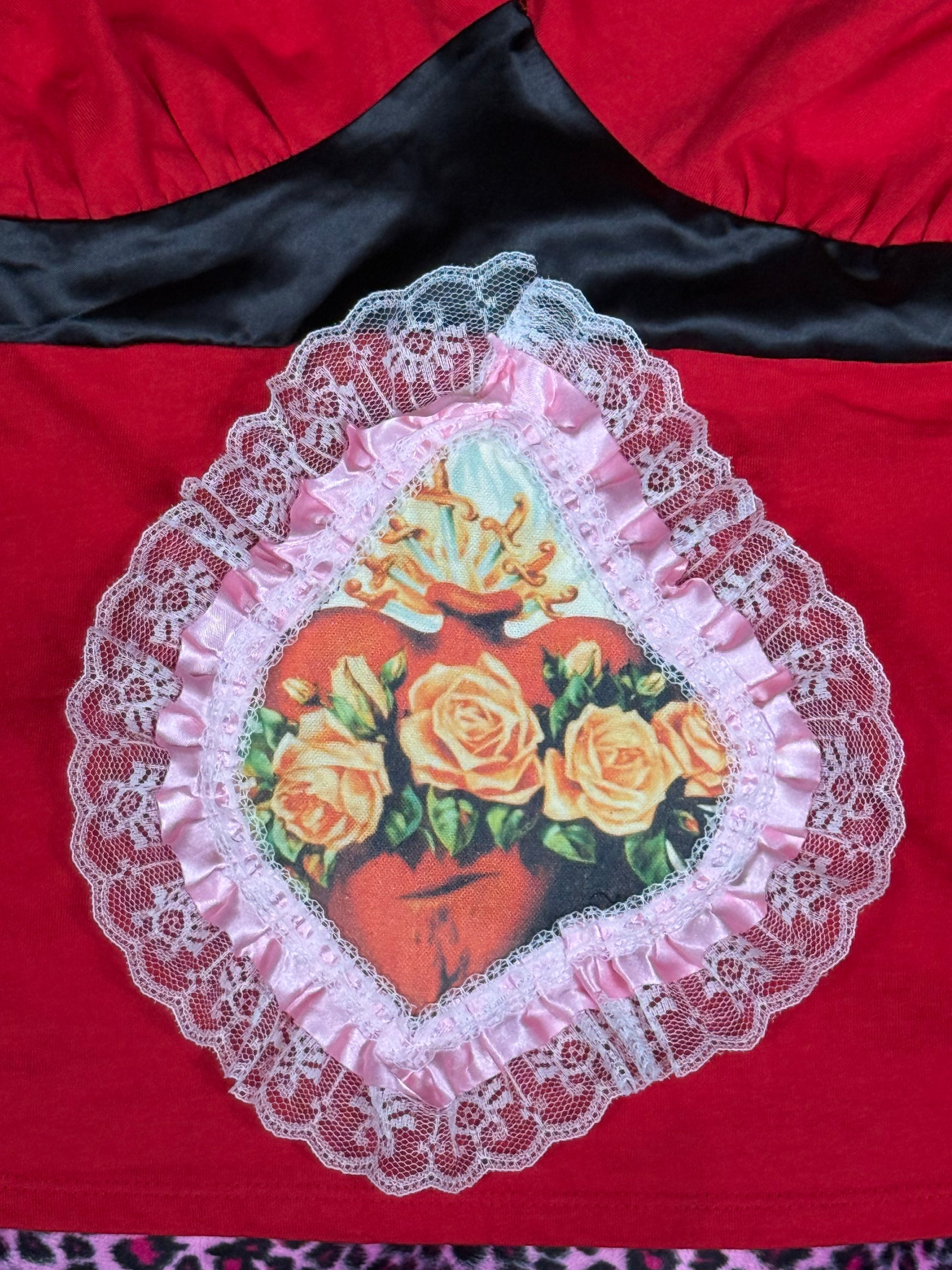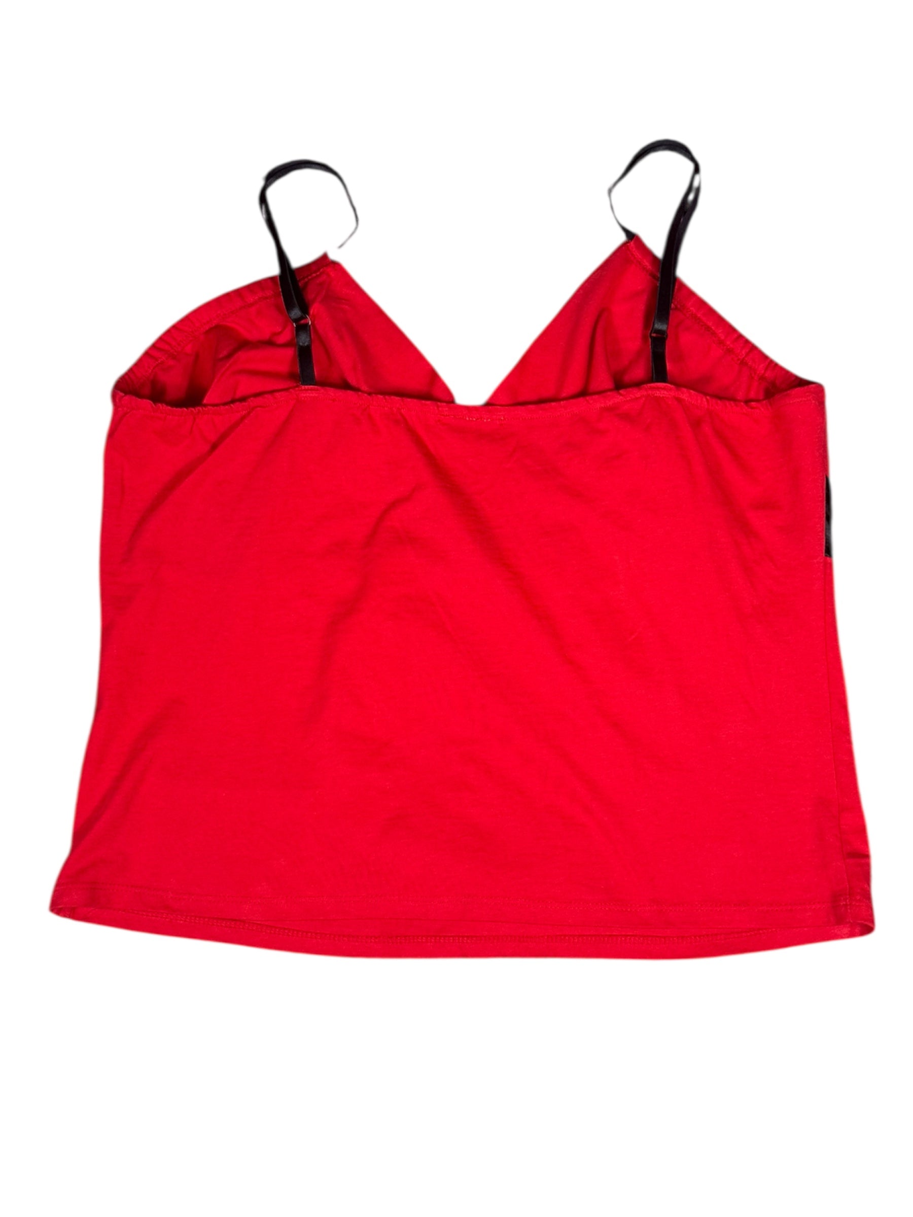 upcycled, sewn, and hand printed red Y2K tank l stretchy! l adjustable straps