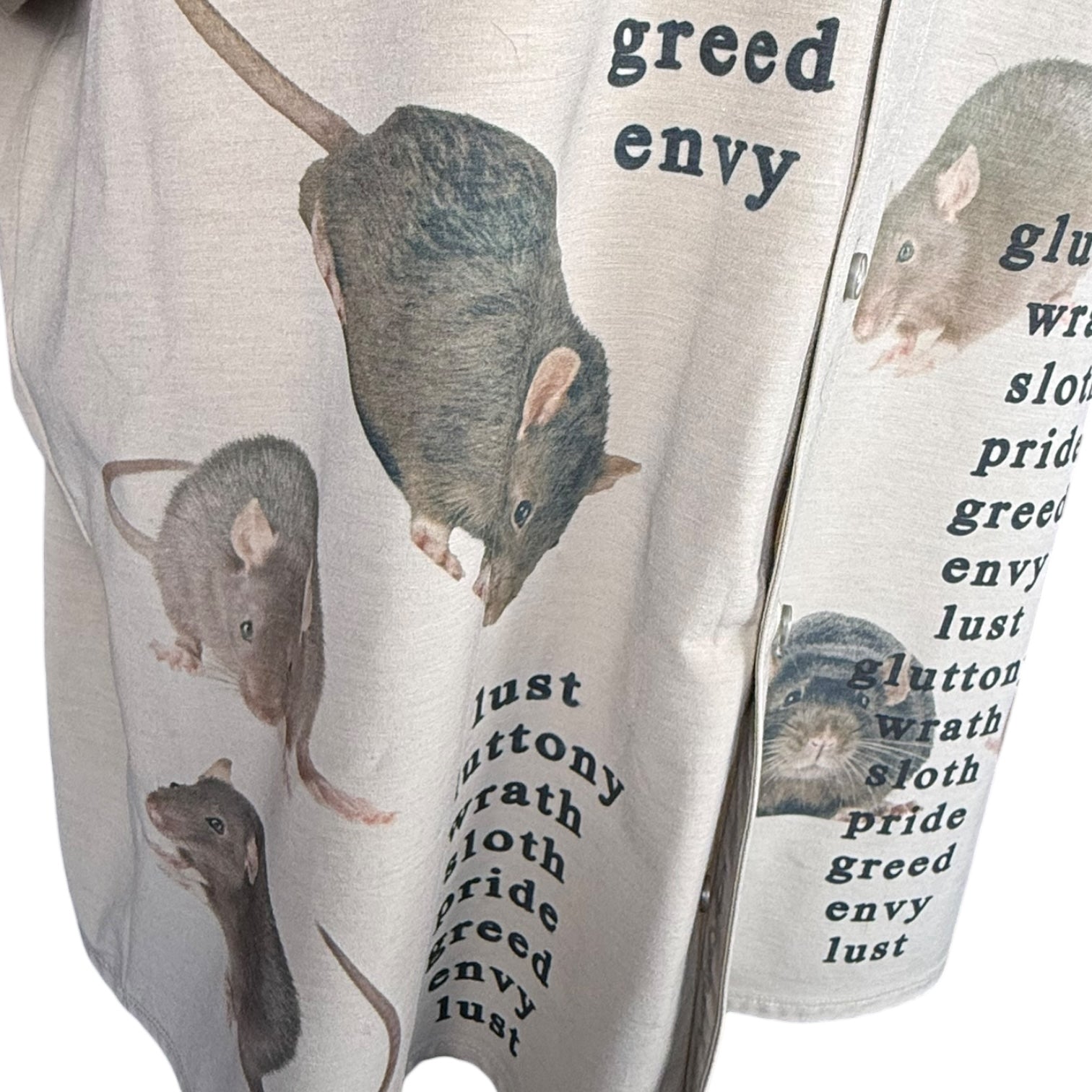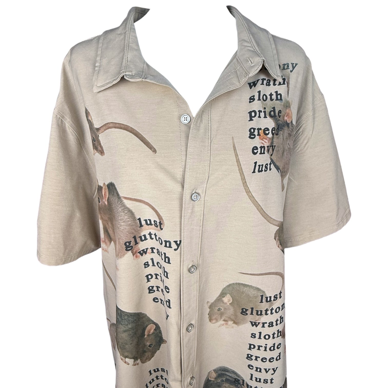 7 DEADLY RATS TAN SHORT SLEEVE BUTTON UP - 2XL
