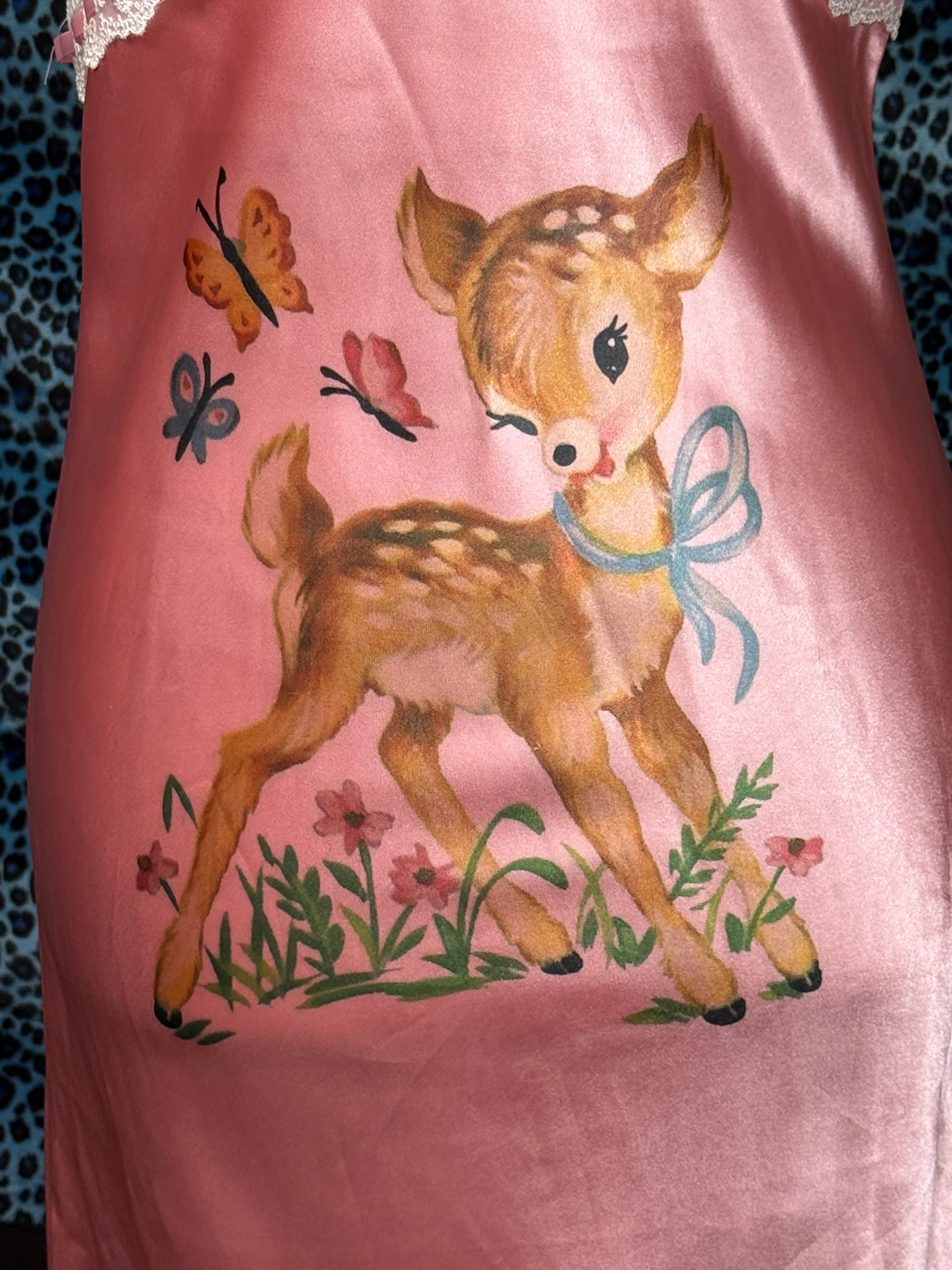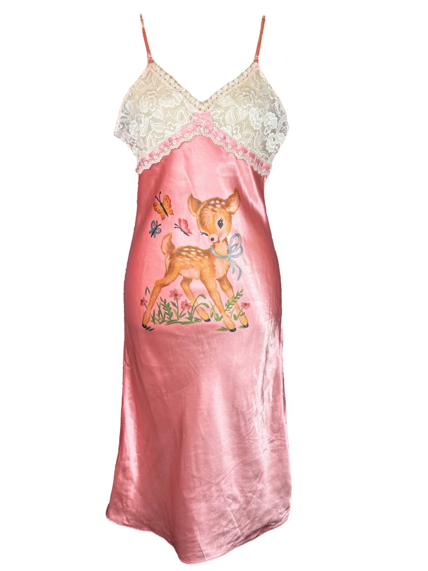 Upcycled vintage lace slip dress with hand printed image l adjustable straps l