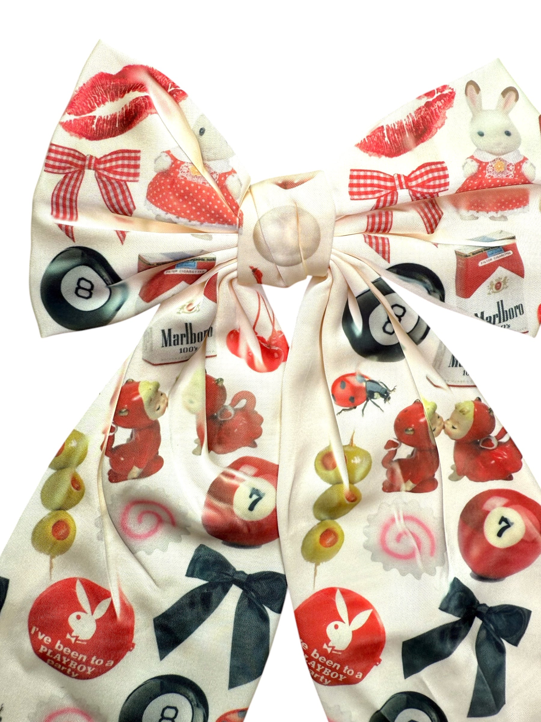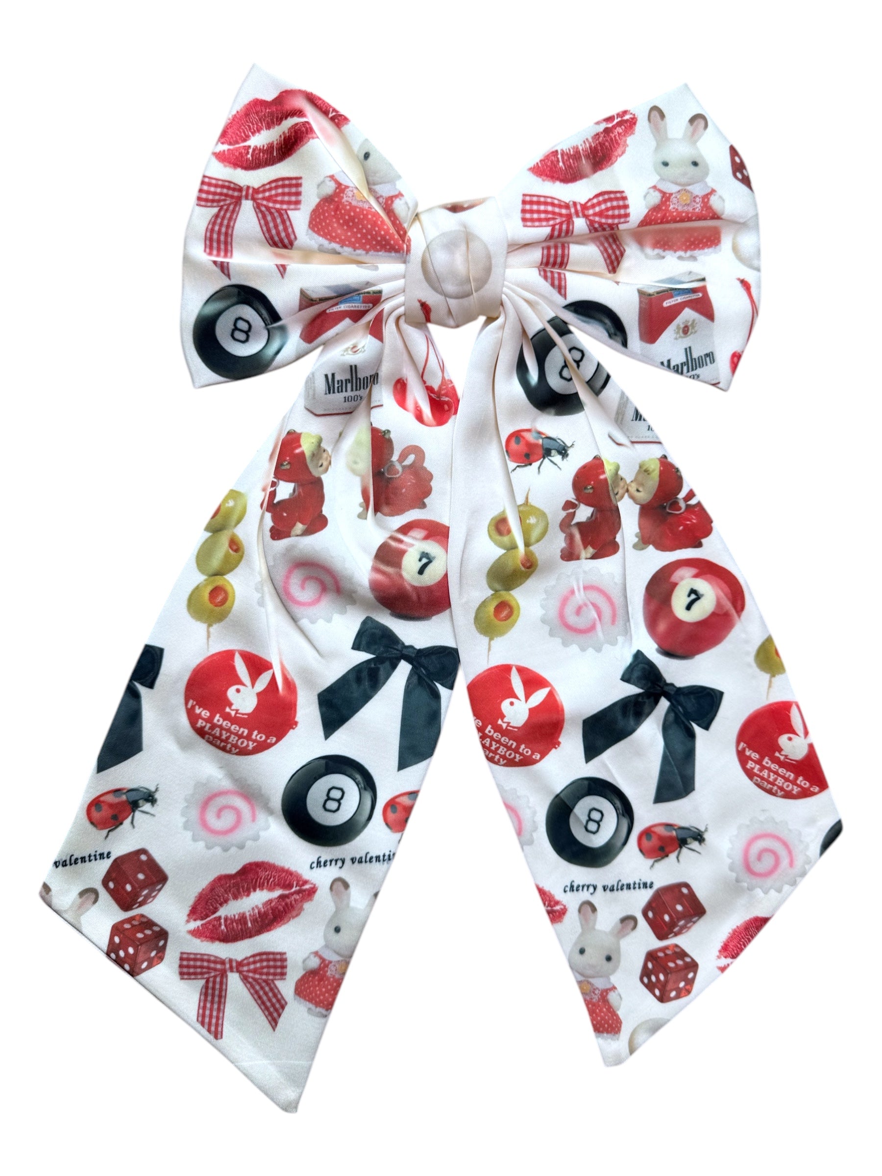 hand-printed design of white bow | clips into hair as pictured l ready to ship!