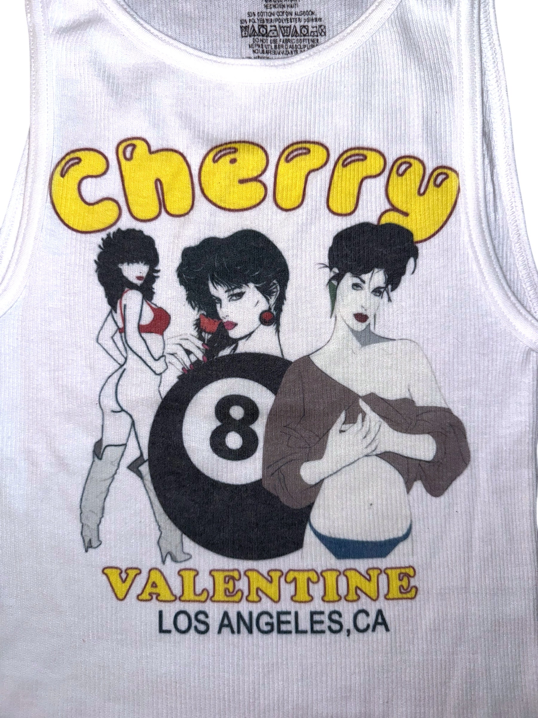 Custom hand printed design on ribbed tank. Can be long or cropped like photos shown.