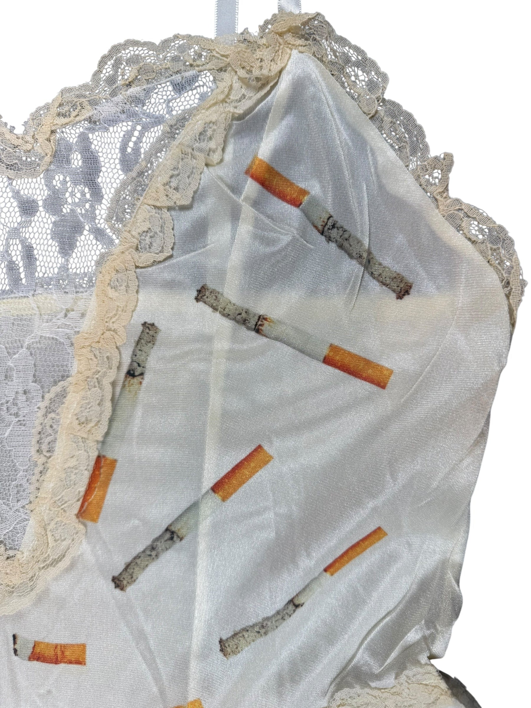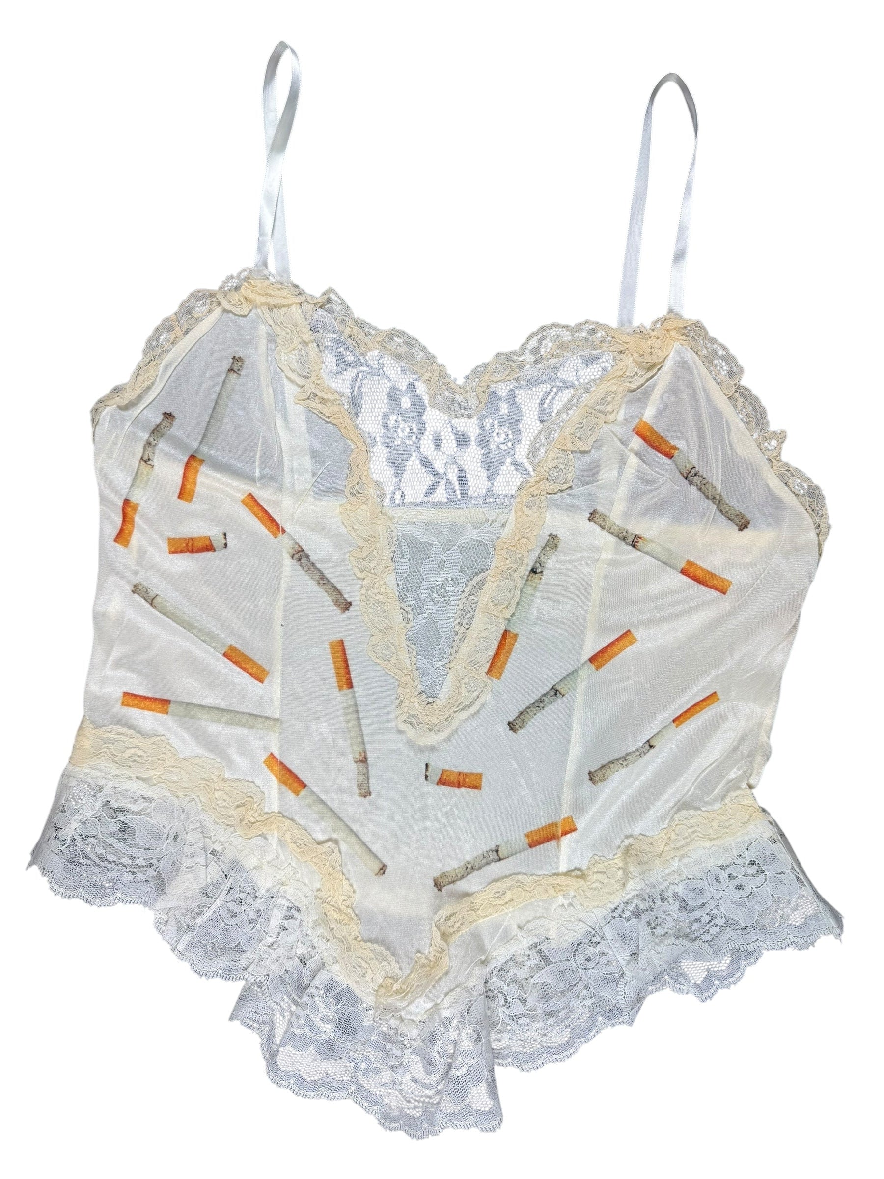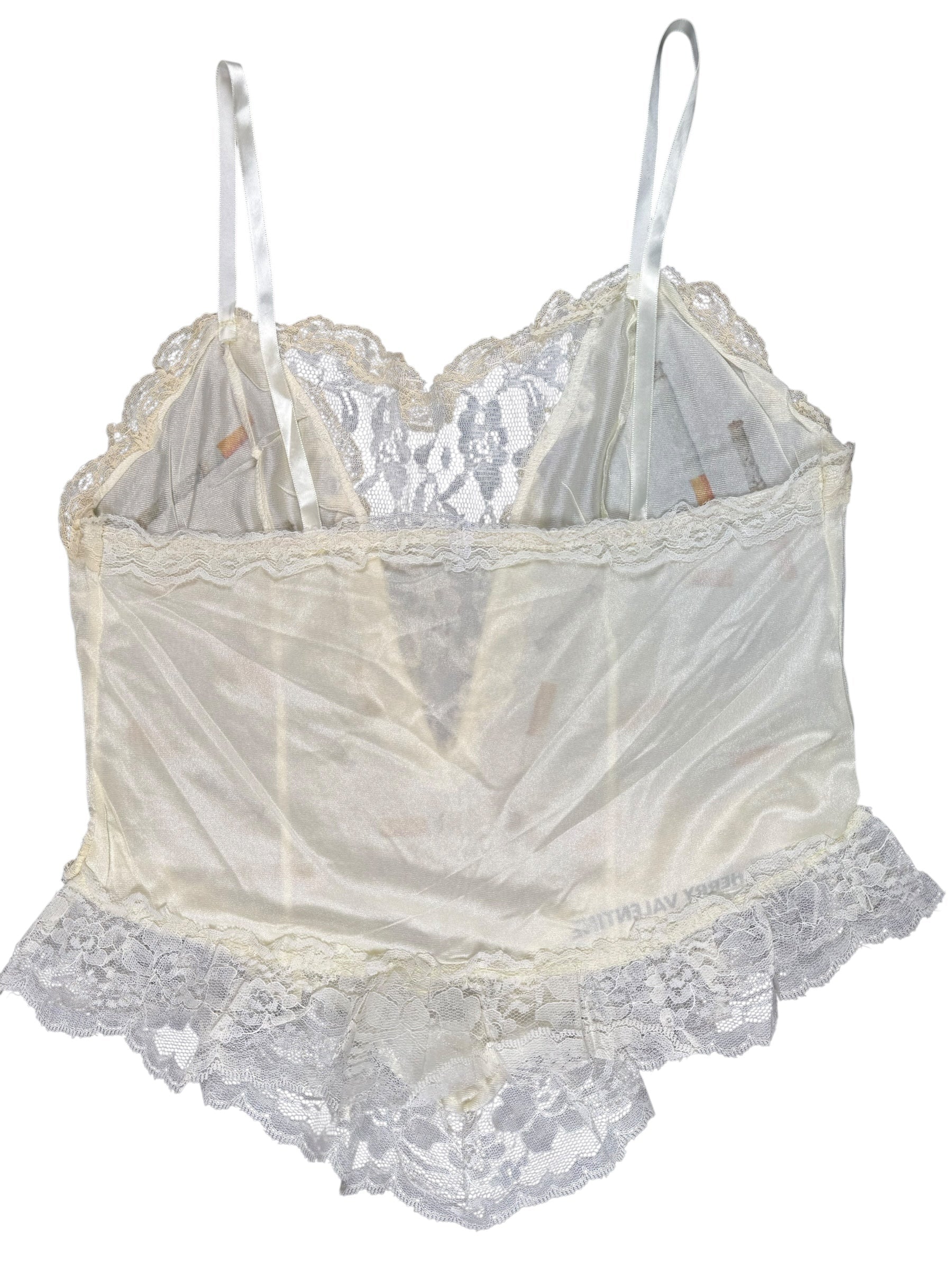 upcycled and hand printed on lace deadstock tank top l marked a size large fits more like a medium