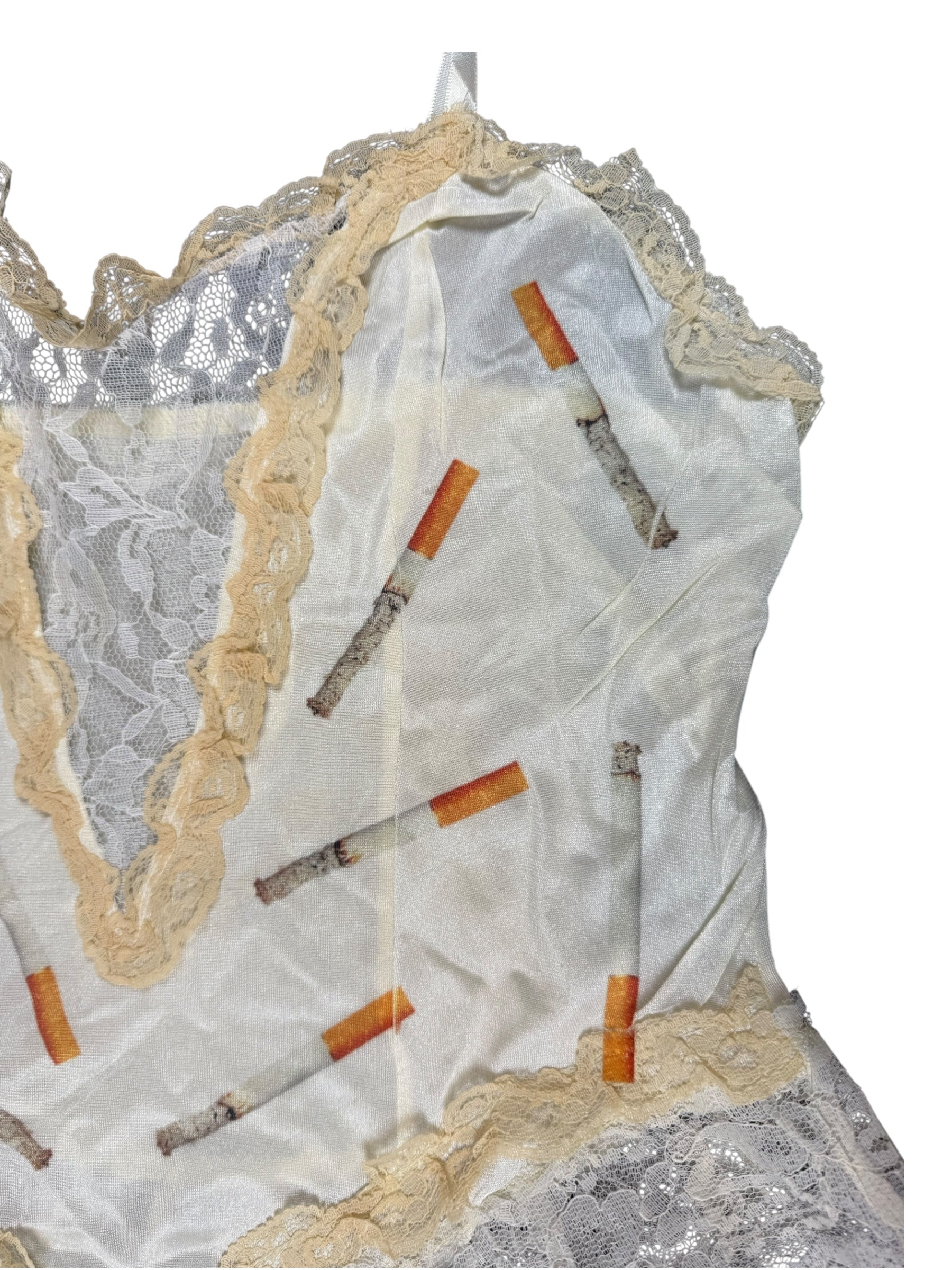 upcycled and hand printed on lace deadstock tank top l marked a size large fits more like a medium