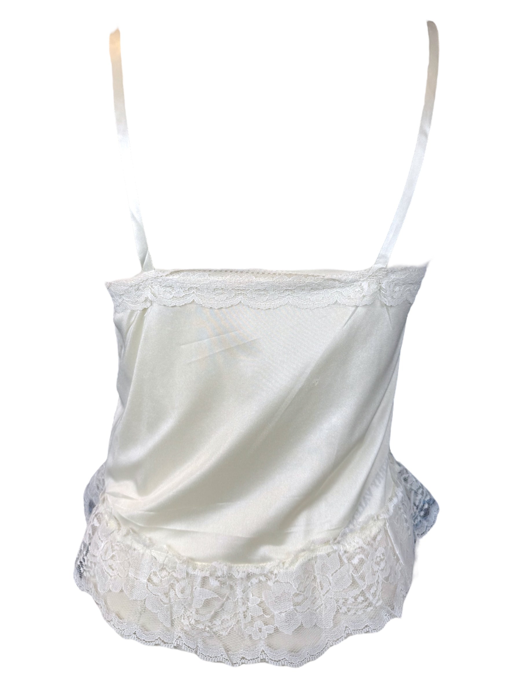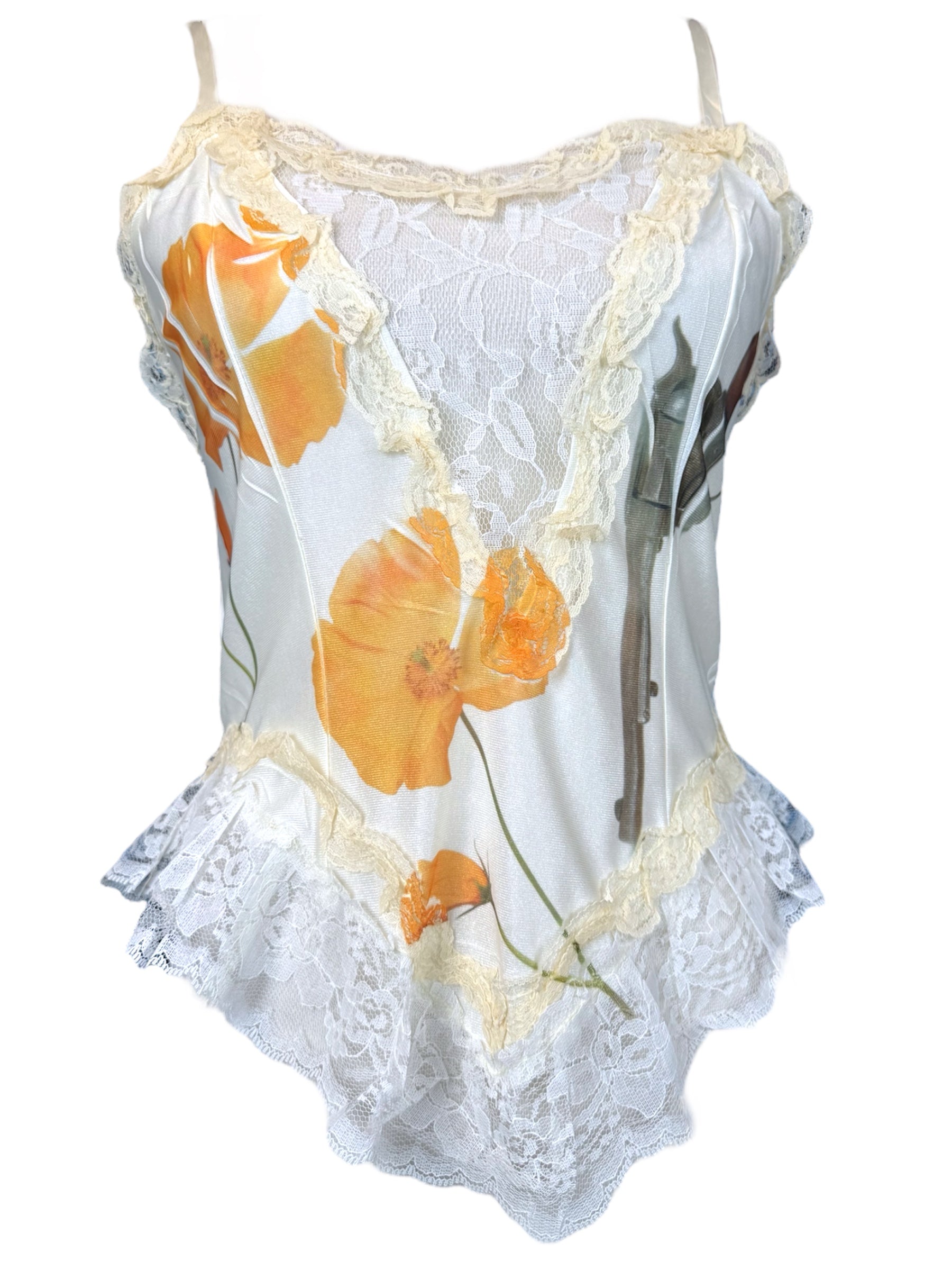Upcycled deadstock lace tank with hand printed design l no stretch on lace parts