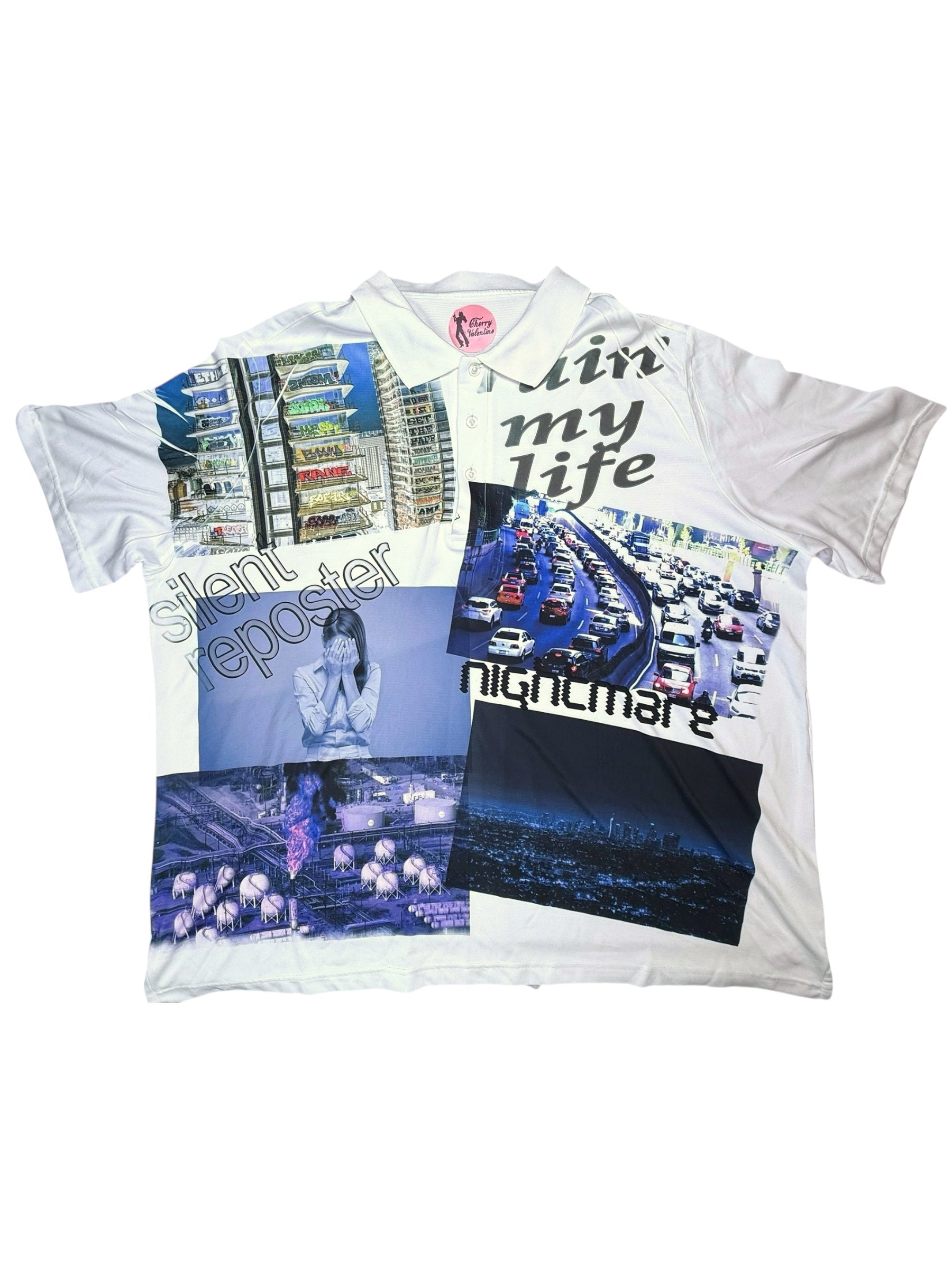 Upcycled polo with hand printed design l stretchy