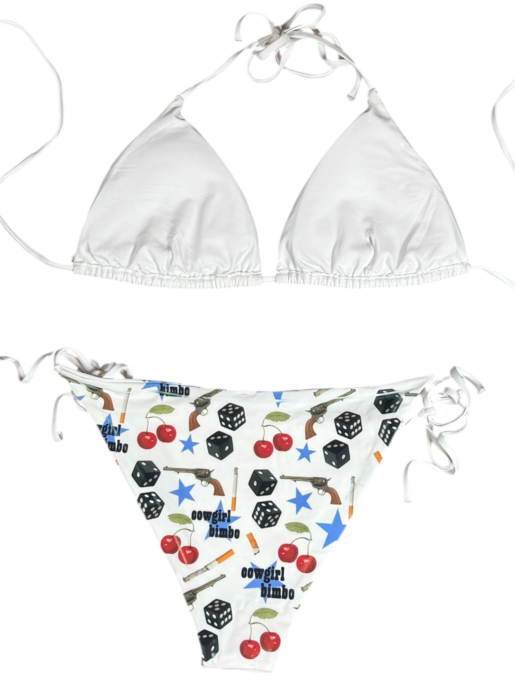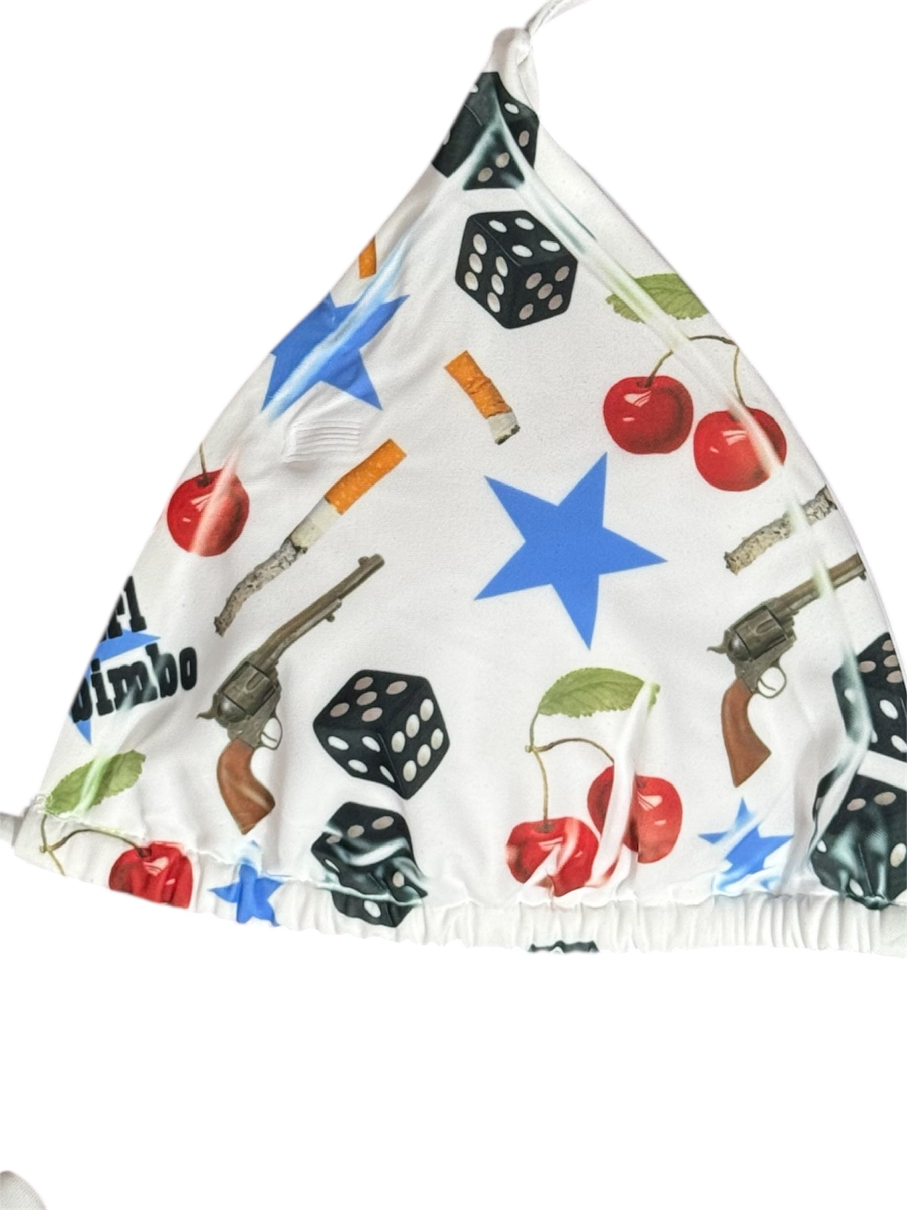 hand printed design on bikini. Bikini is not original shown in photo but will be vary similar as I hand print all items :) misprints and fading is expected!