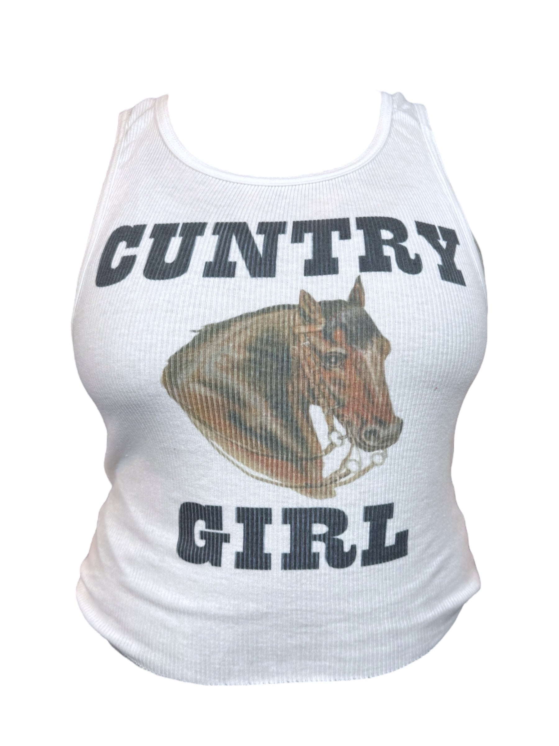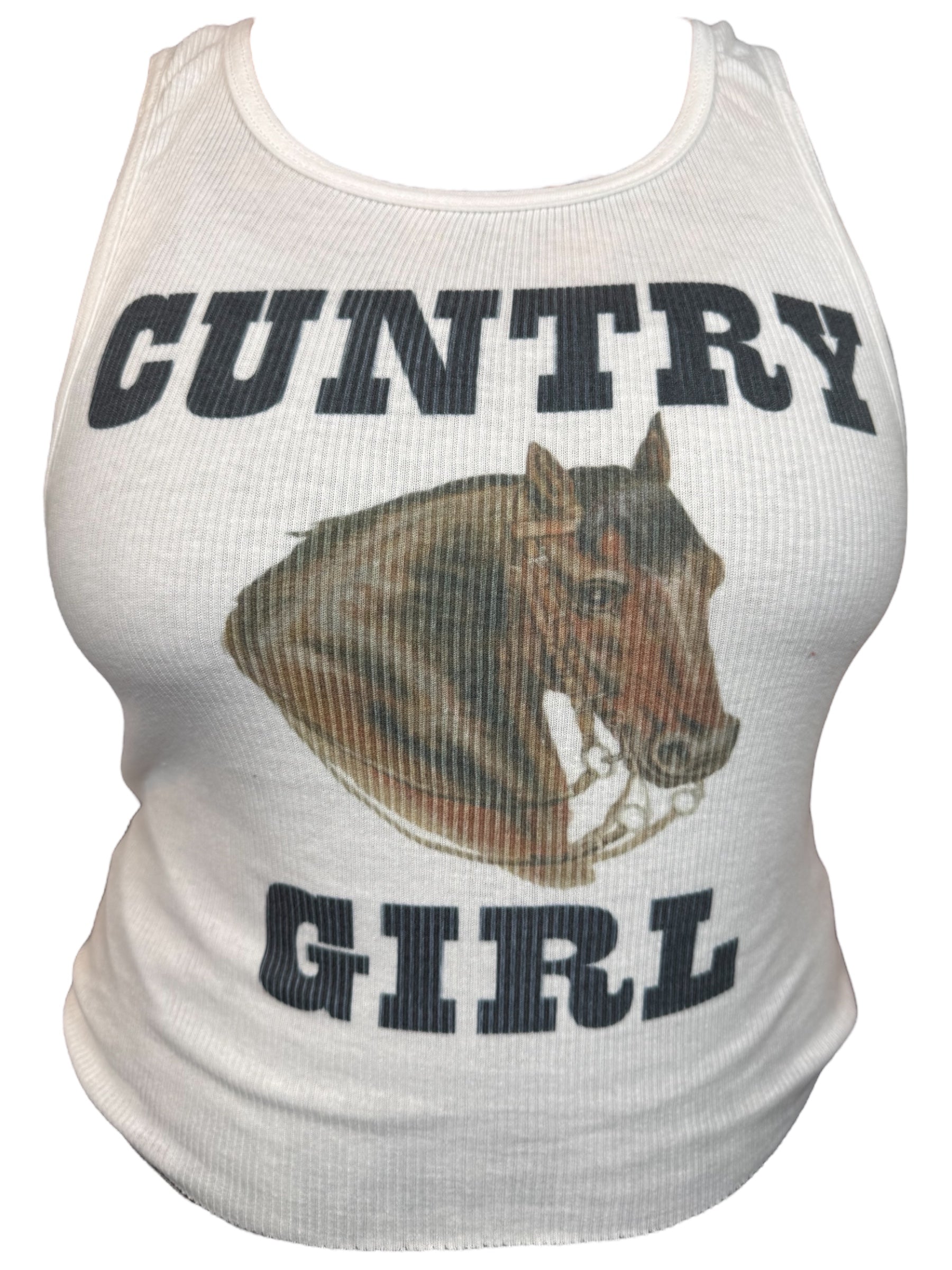 Custom hand printed design on ribbed tank. Can be long or cropped like photos shown.