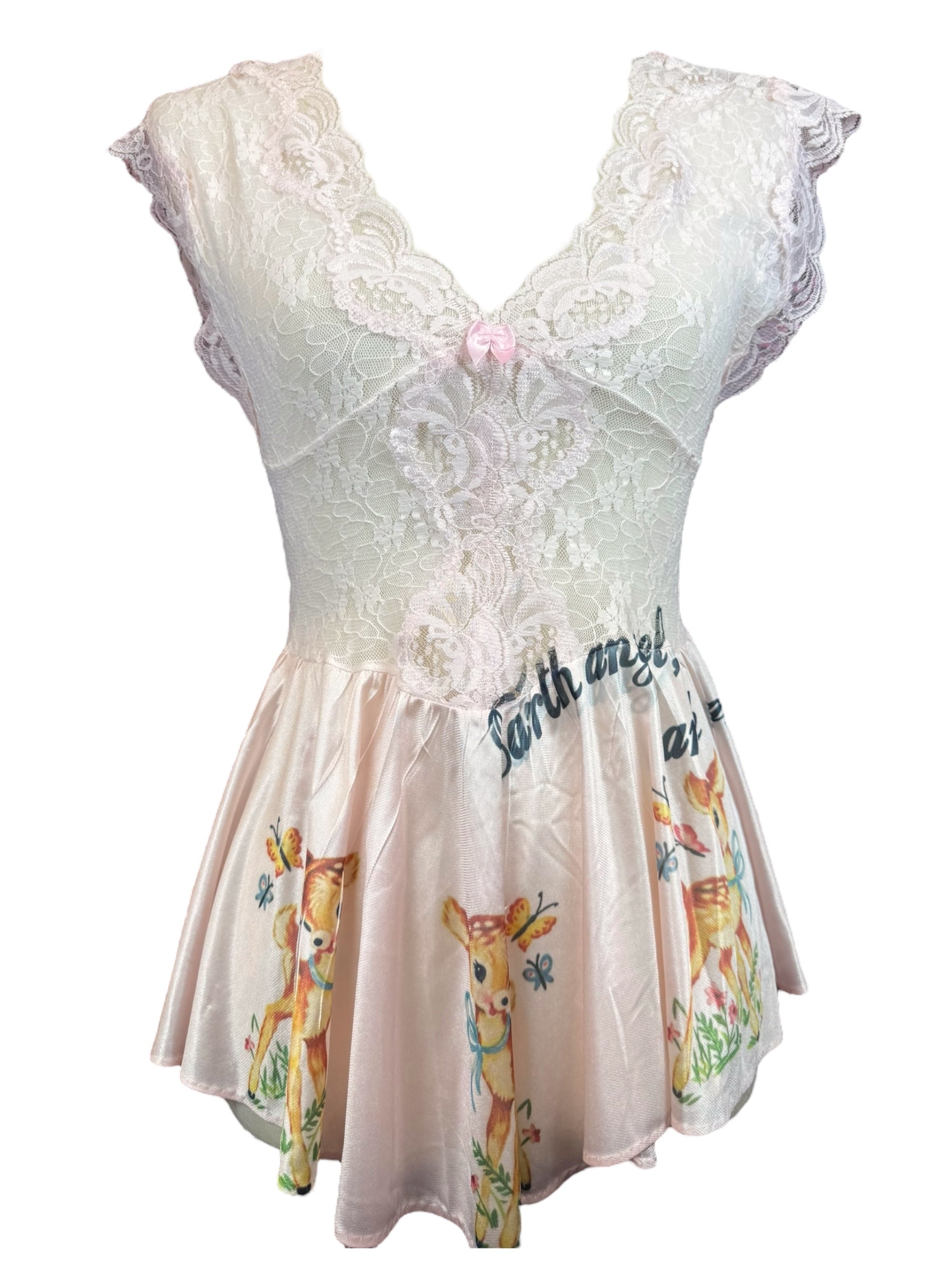 Upcycled vintage lingerie top with hand printed details l stretchy