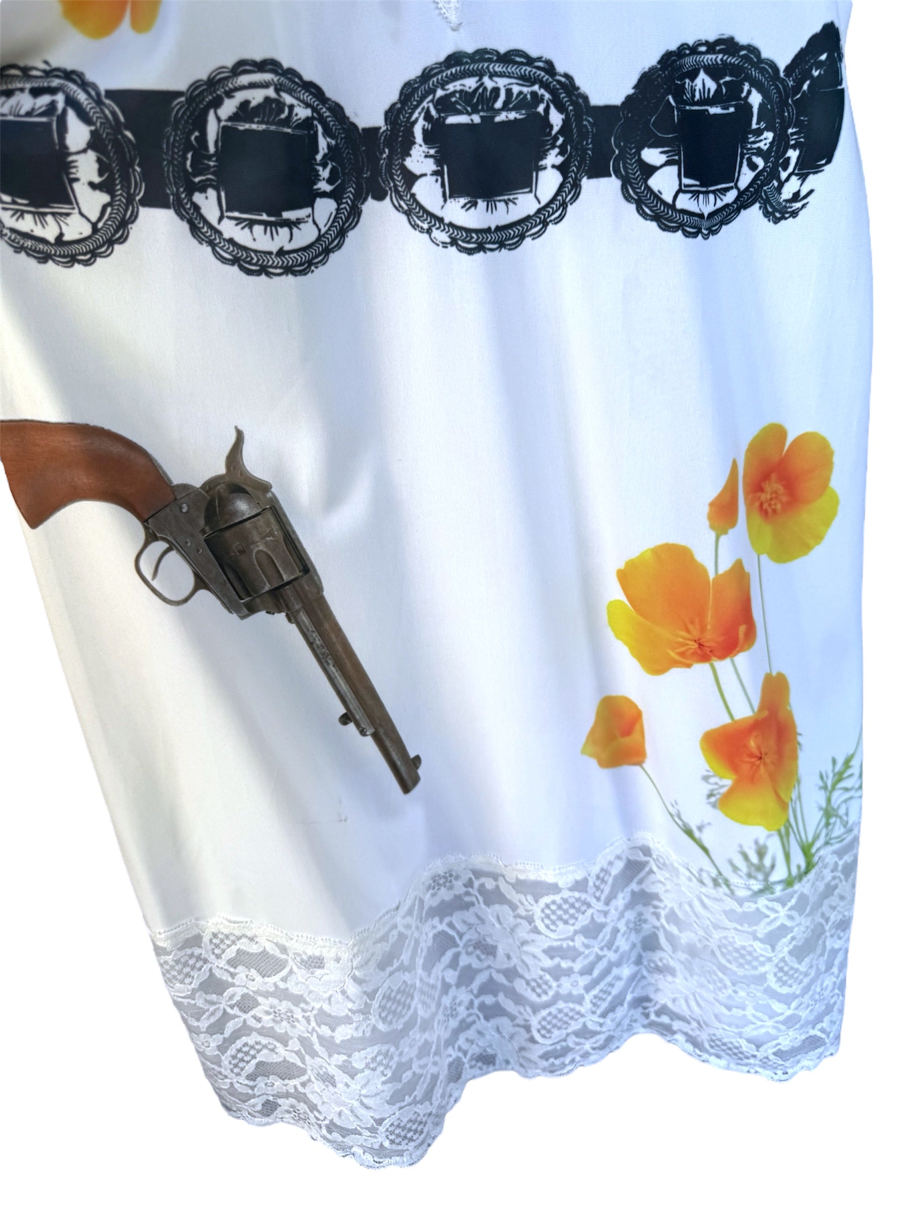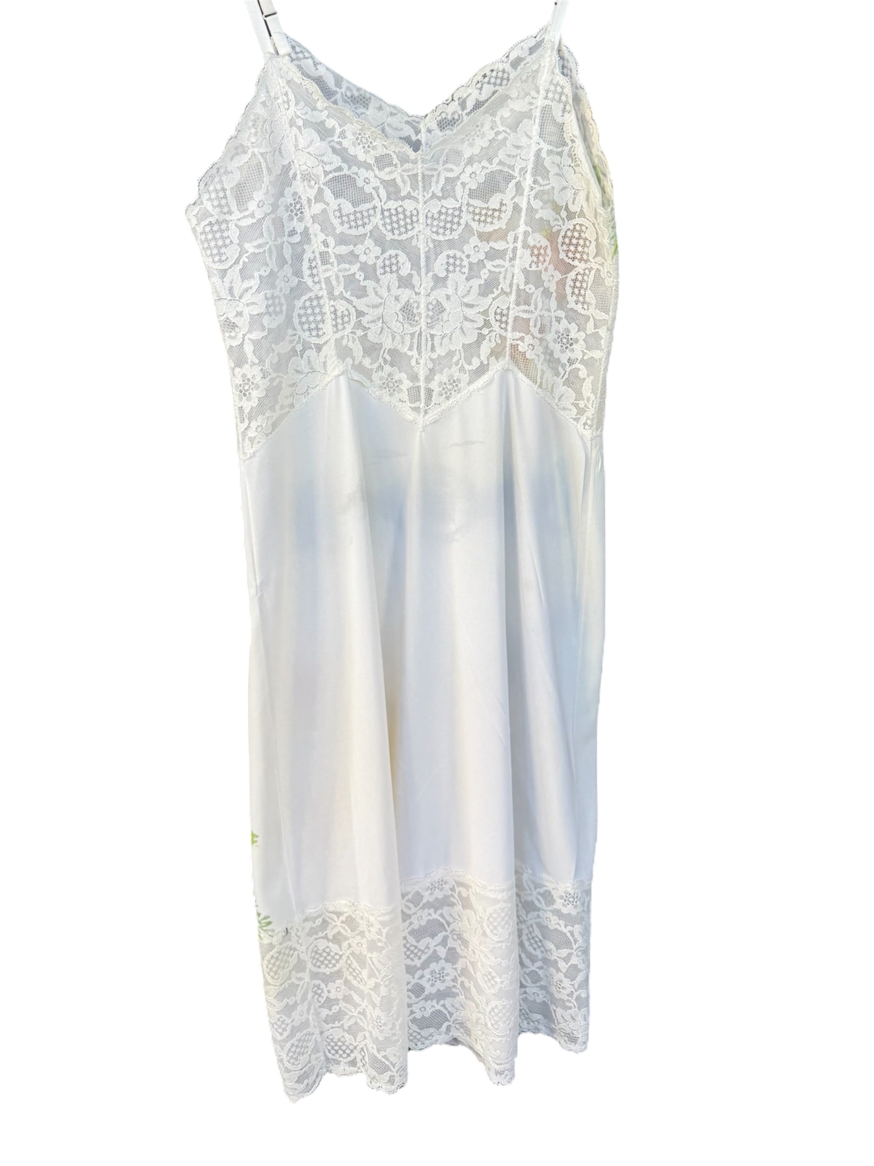 vintage slip dress with hand printed images l adjustable straps l lace details