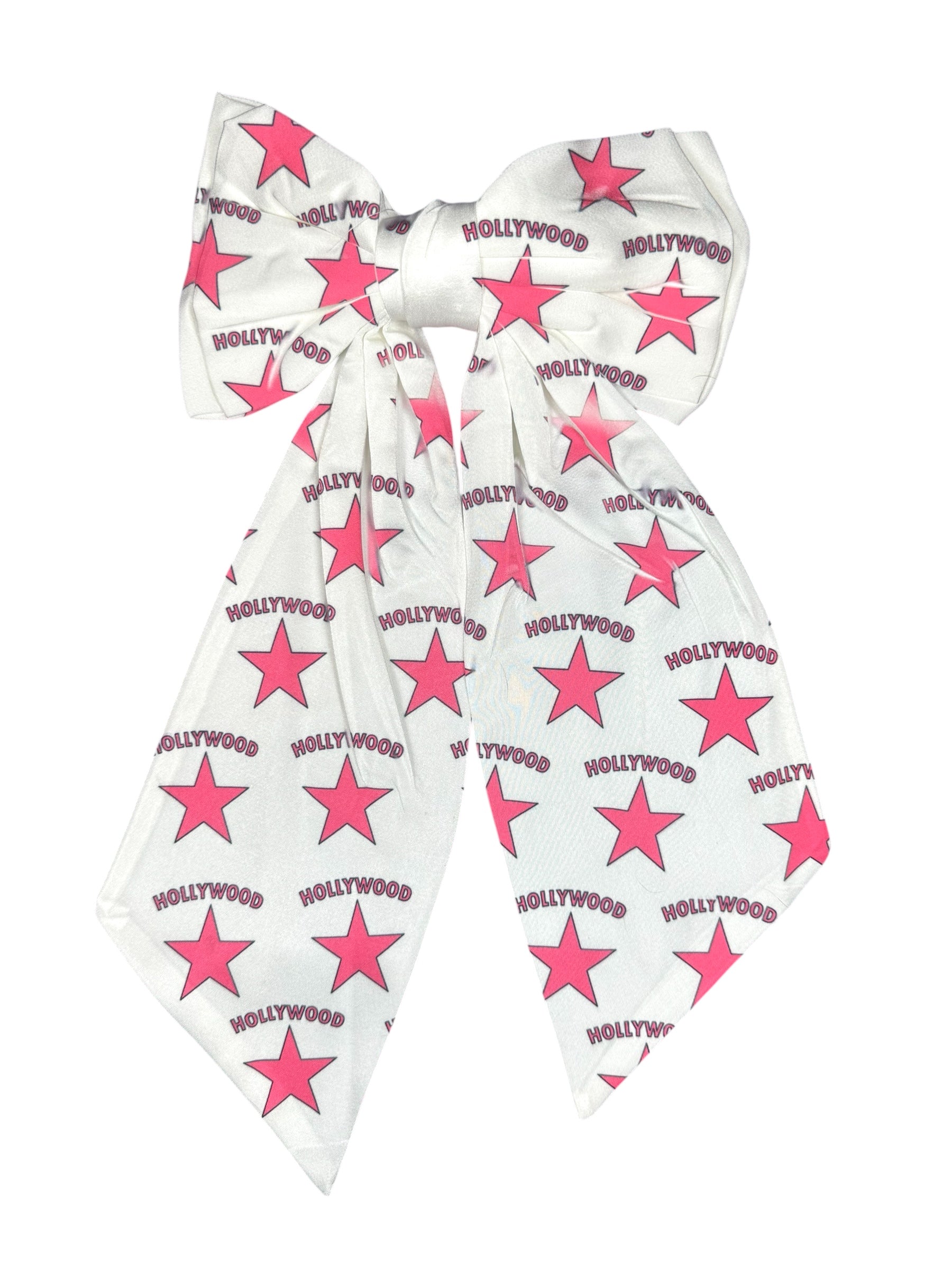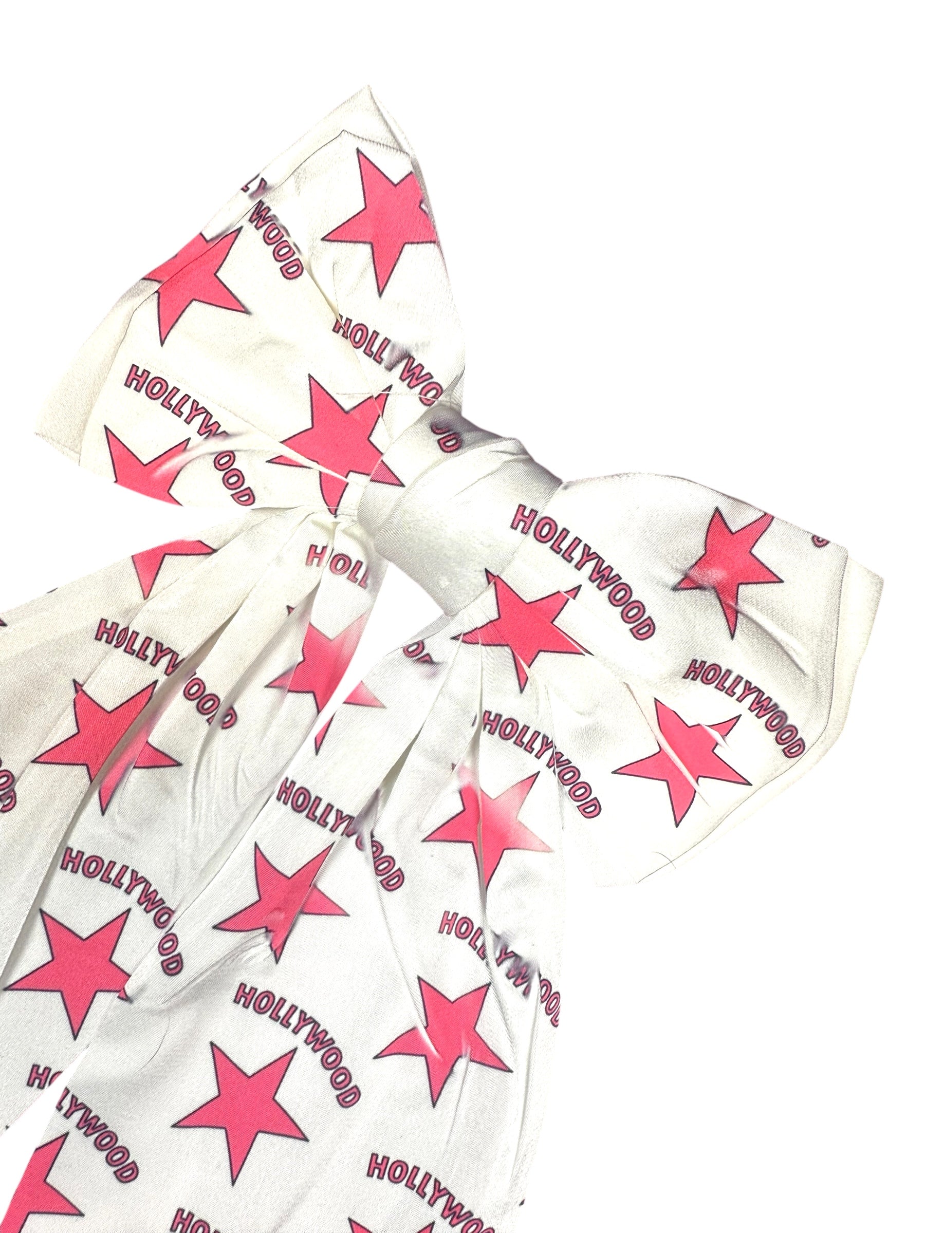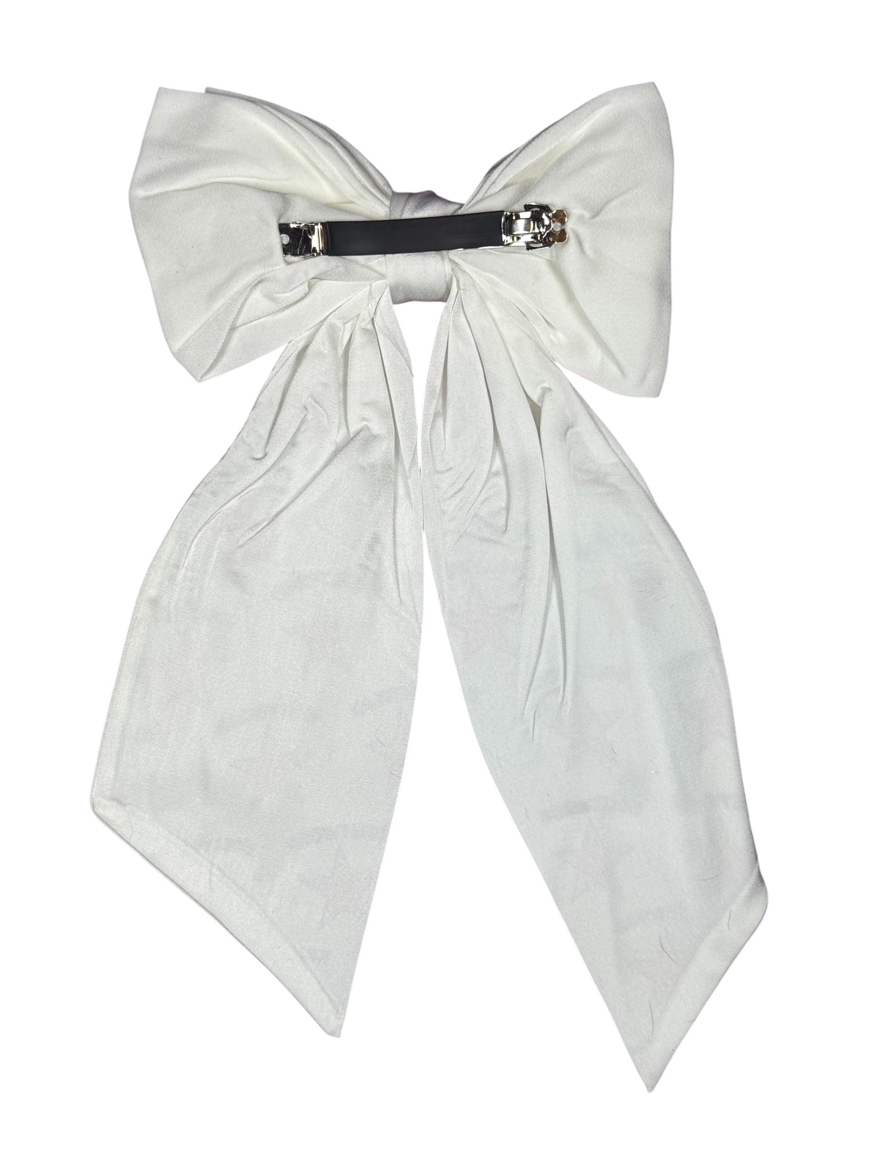 hand-printed design of white bow | clips into hair as pictured l ready to ship!
