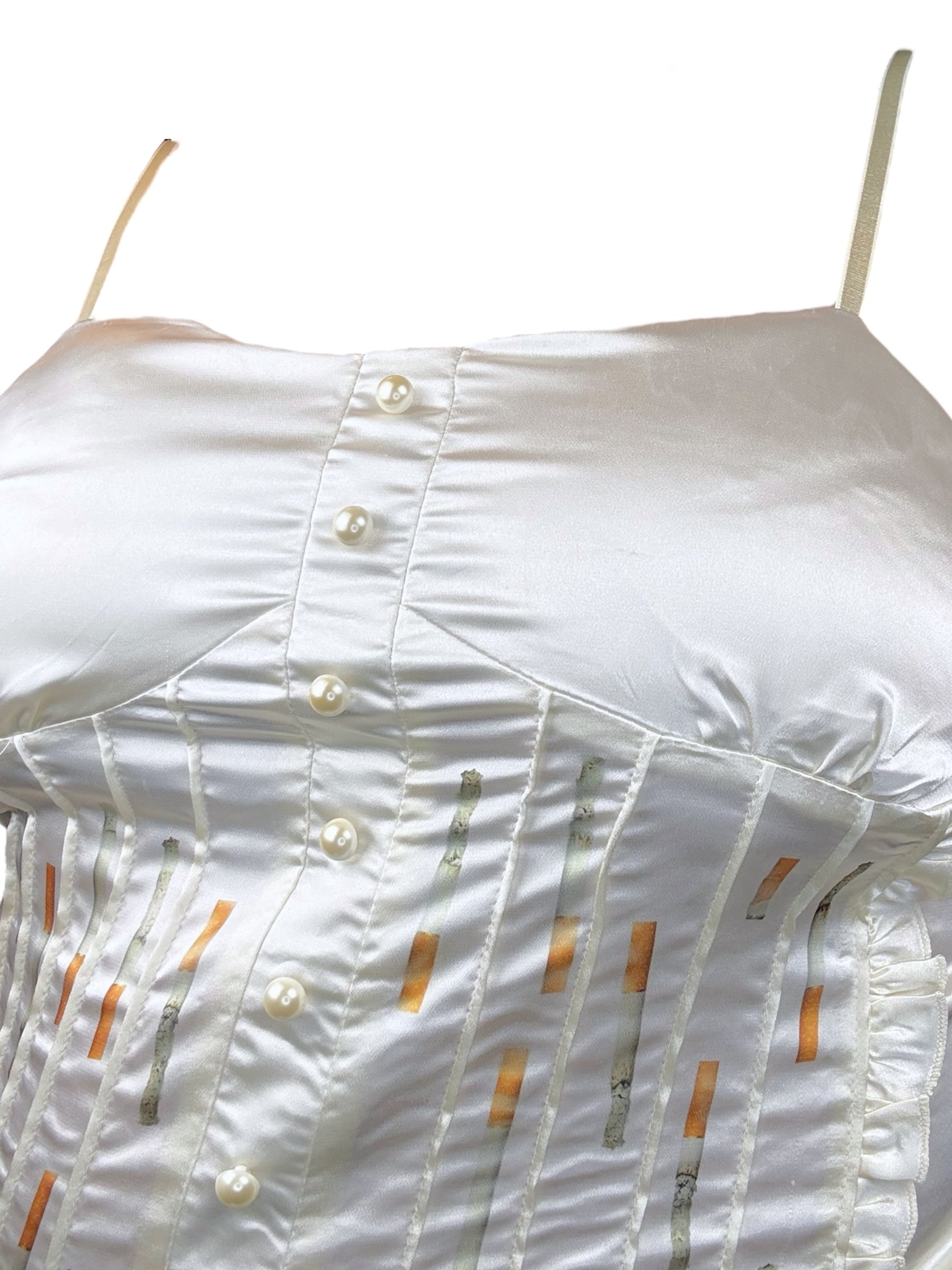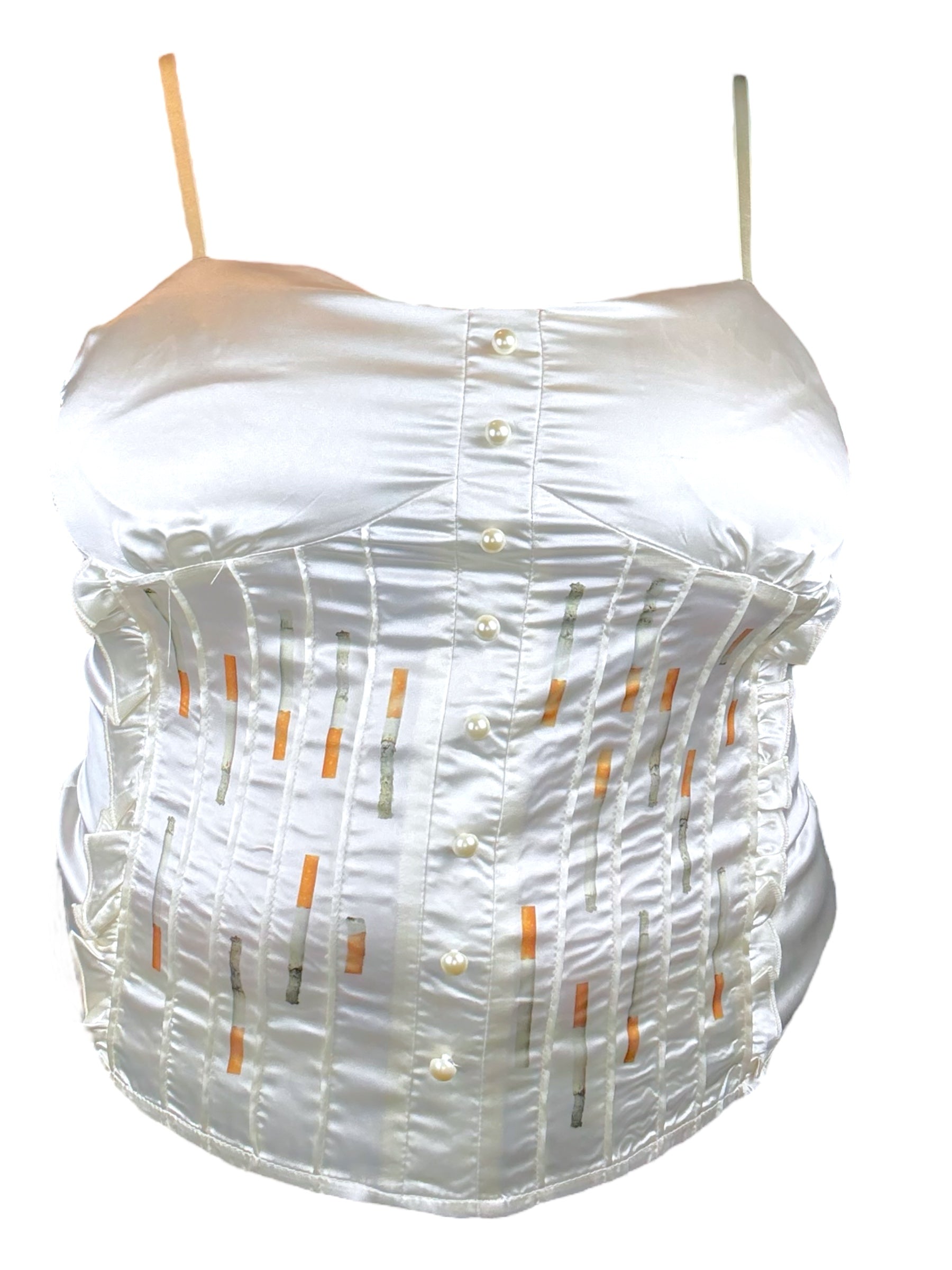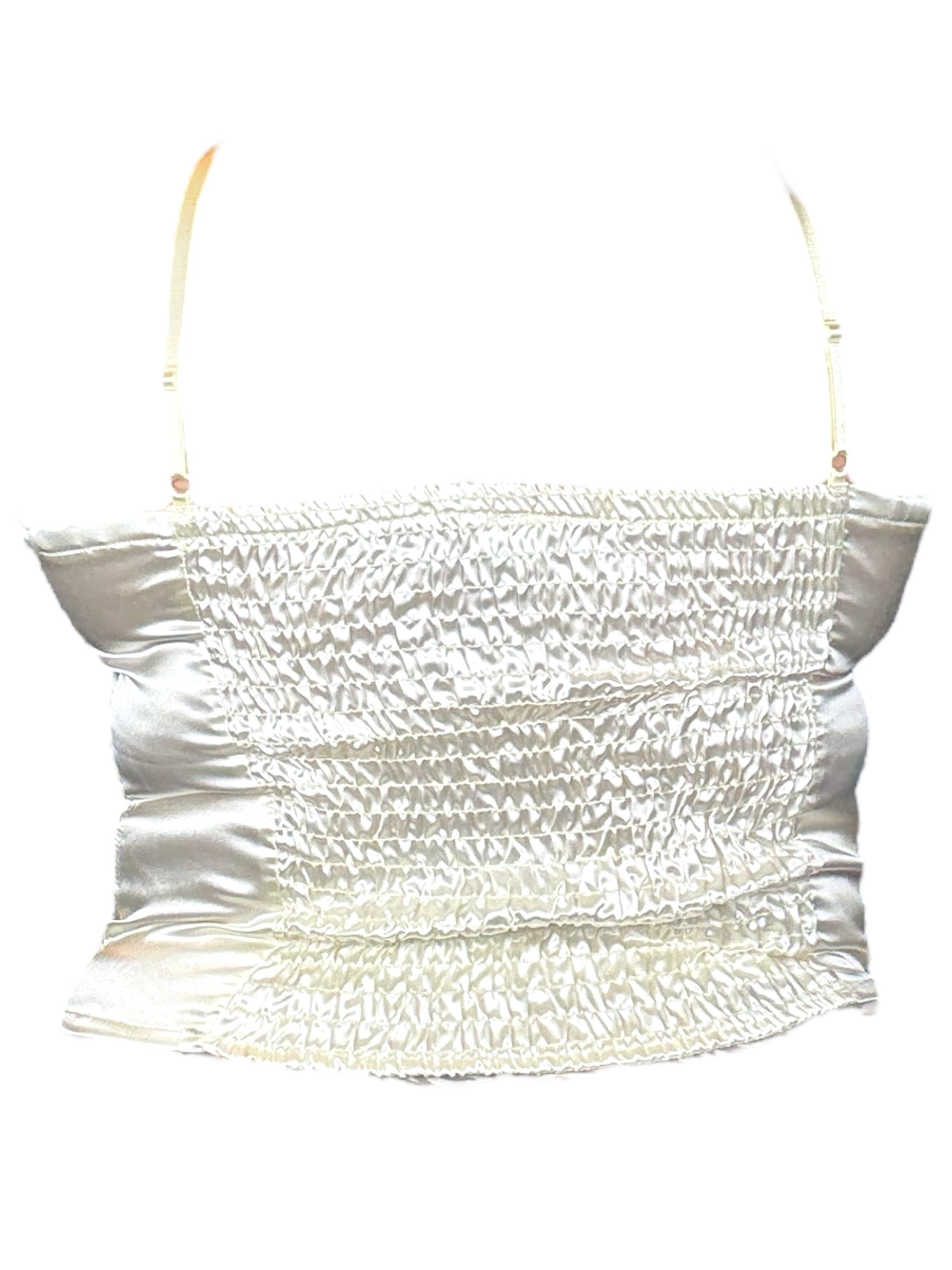 Upcycled Y2K tank with hand printed design l stretchy back l smaller feeling cups l adjustable straps