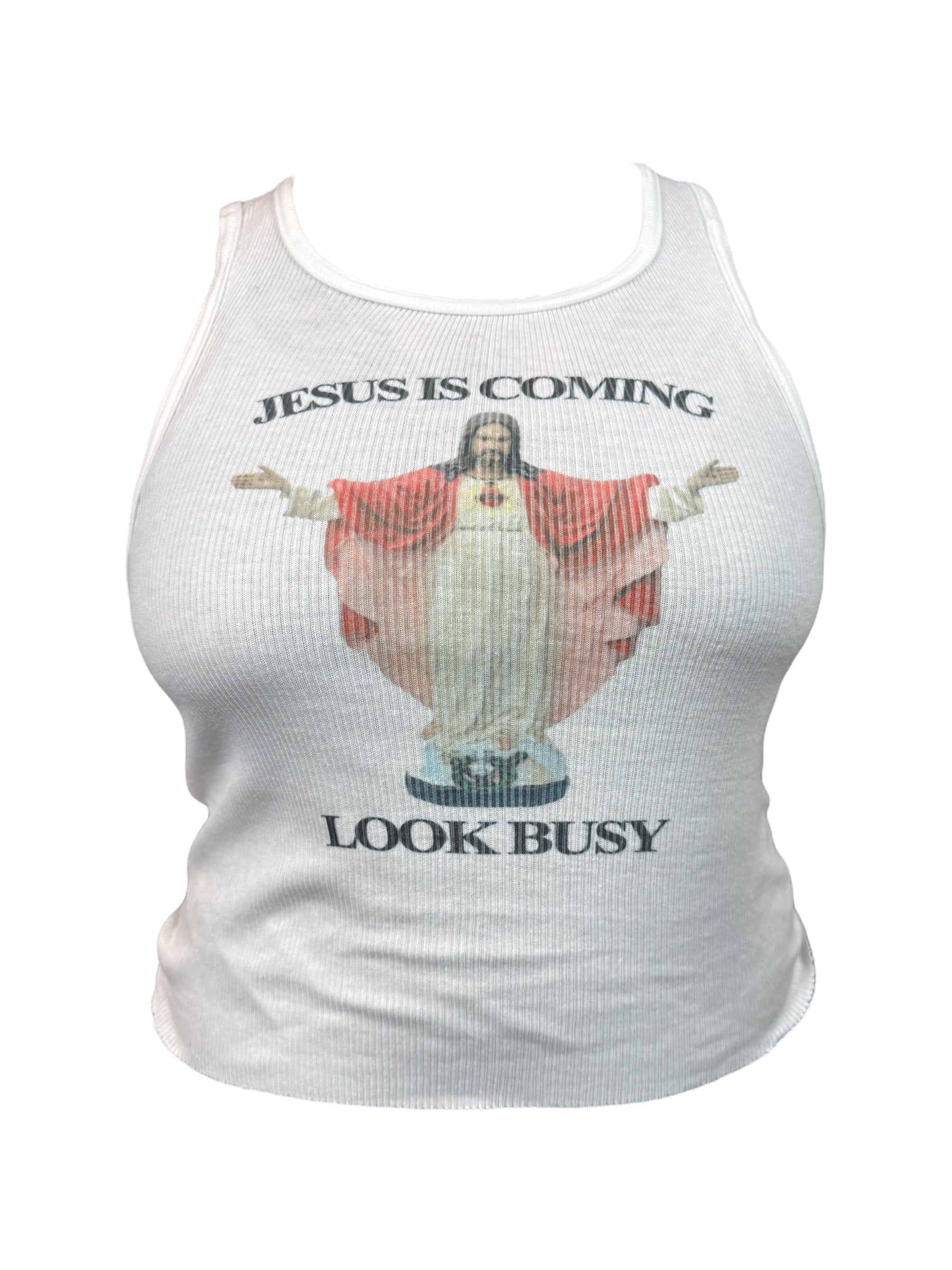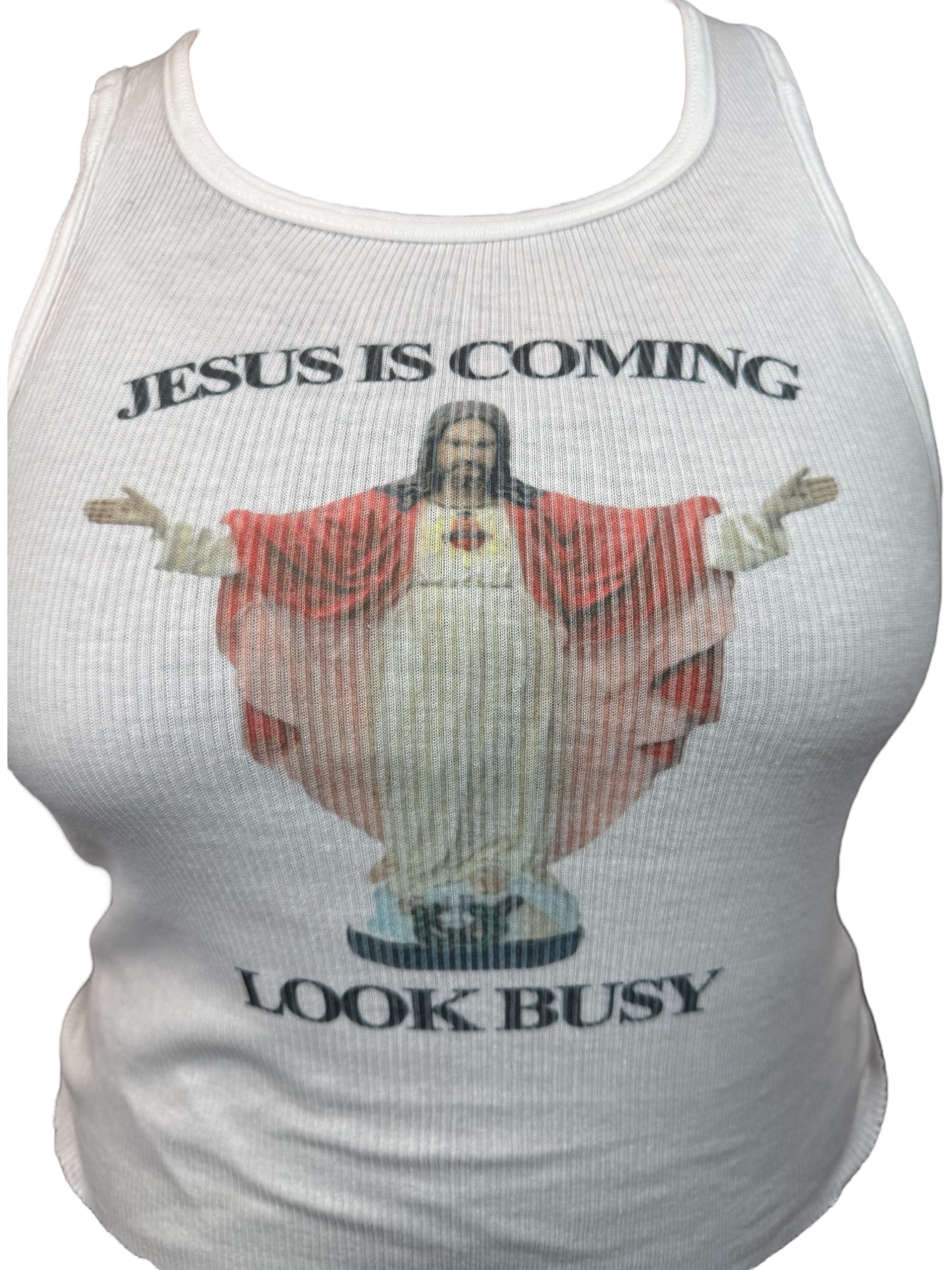 Custom hand printed design on ribbed tank. Can be long or cropped like photos shown.