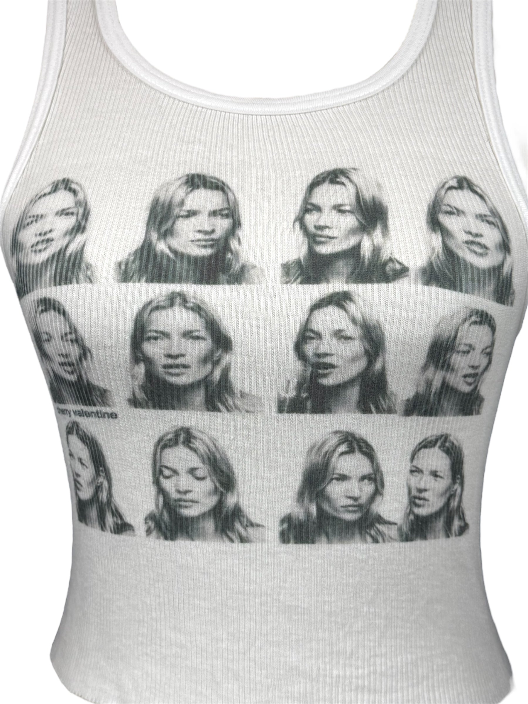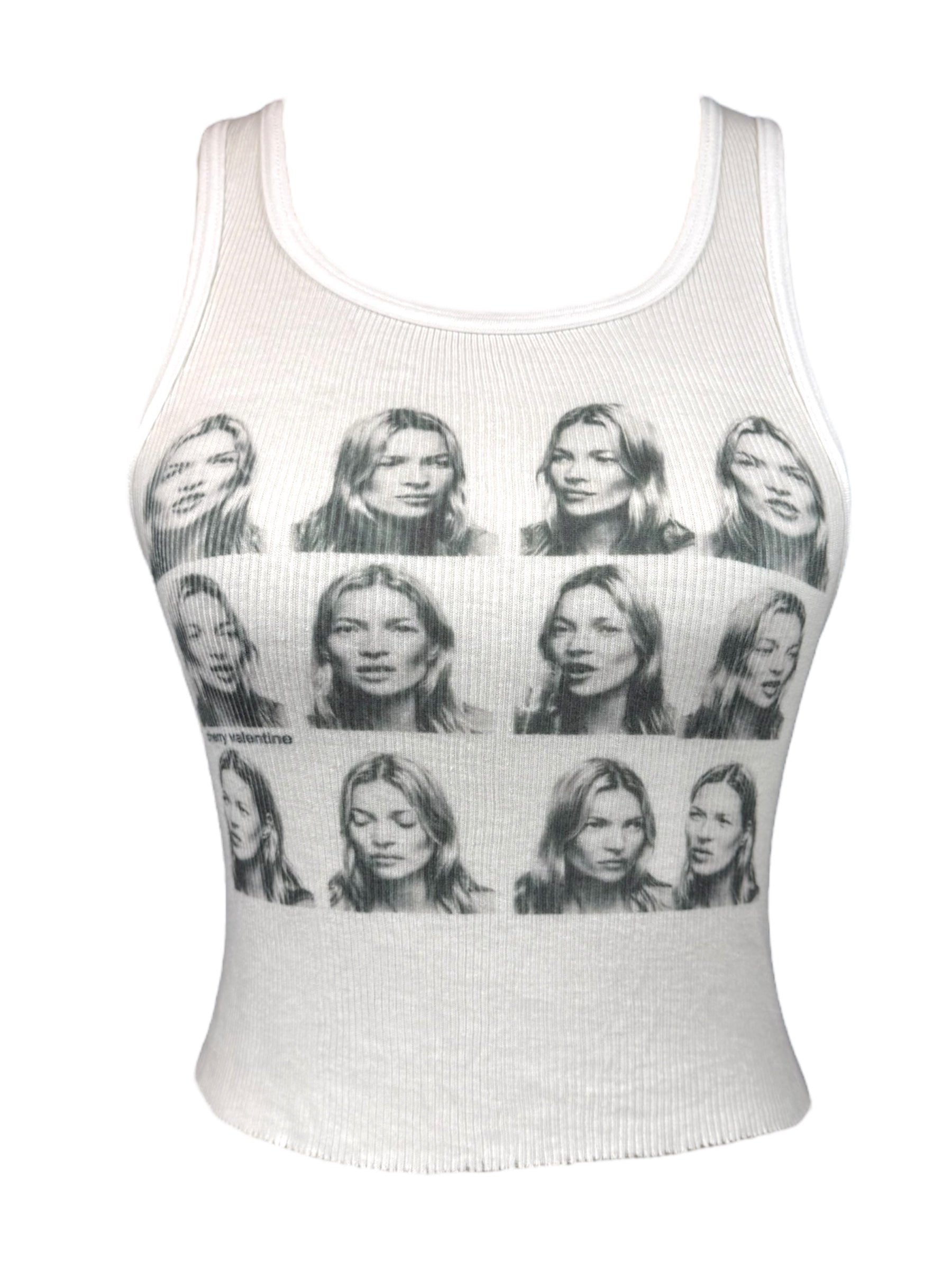 Custom hand printed design on ribbed tank. Can be long or cropped like photos shown.