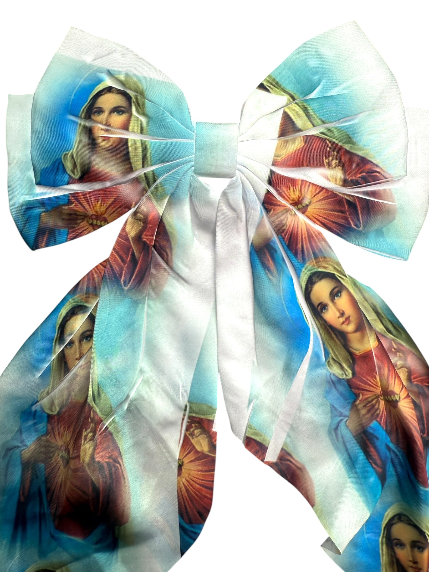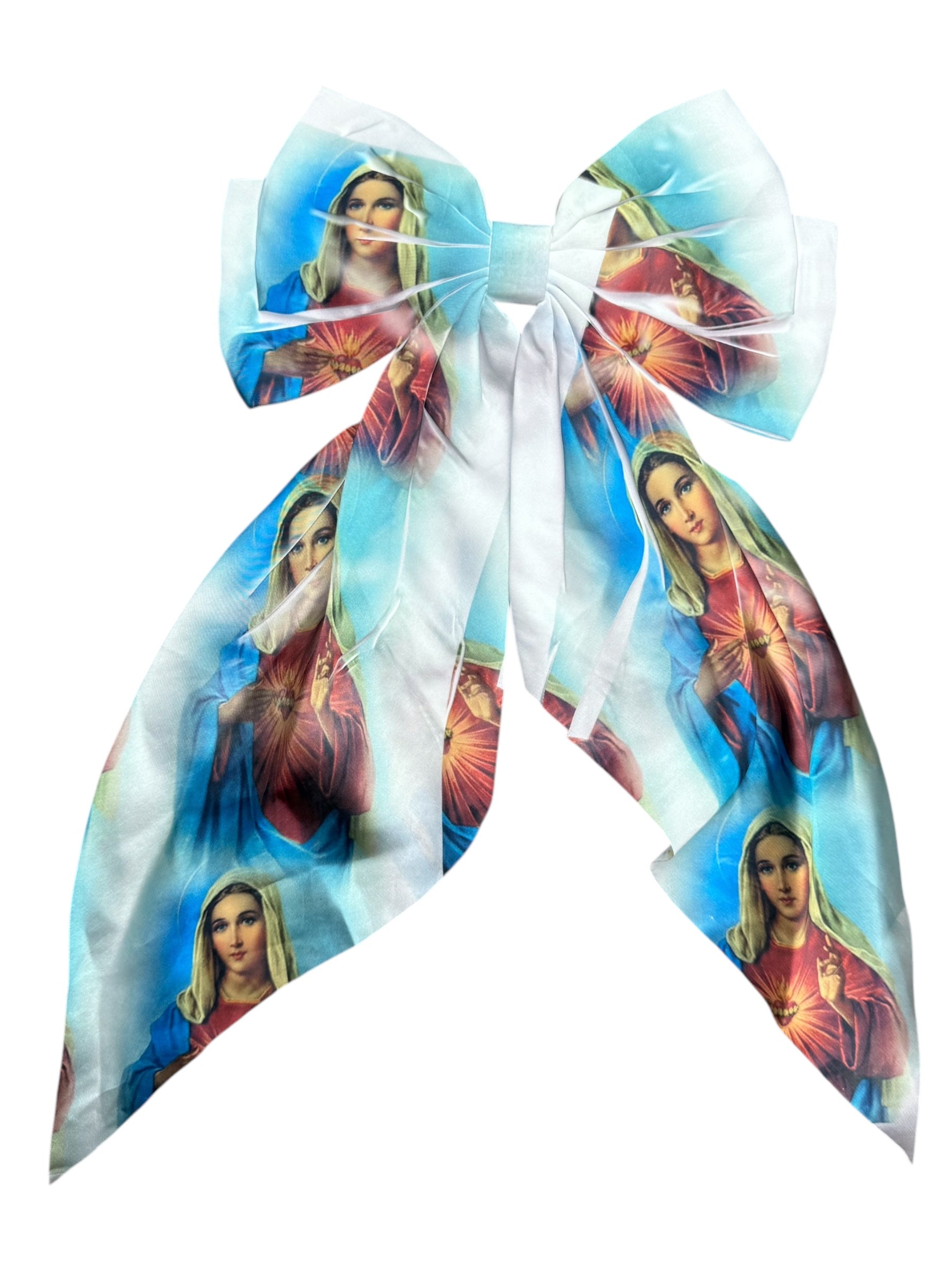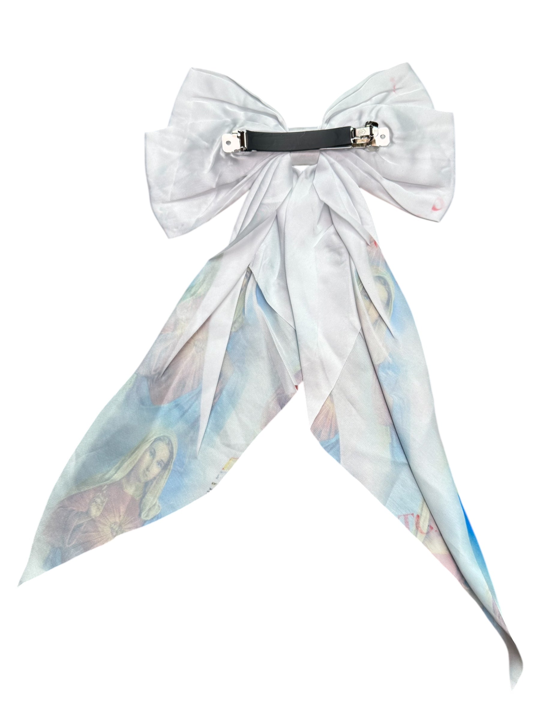 hand-printed design of white bow | clips into hair as pictured l ready to ship!