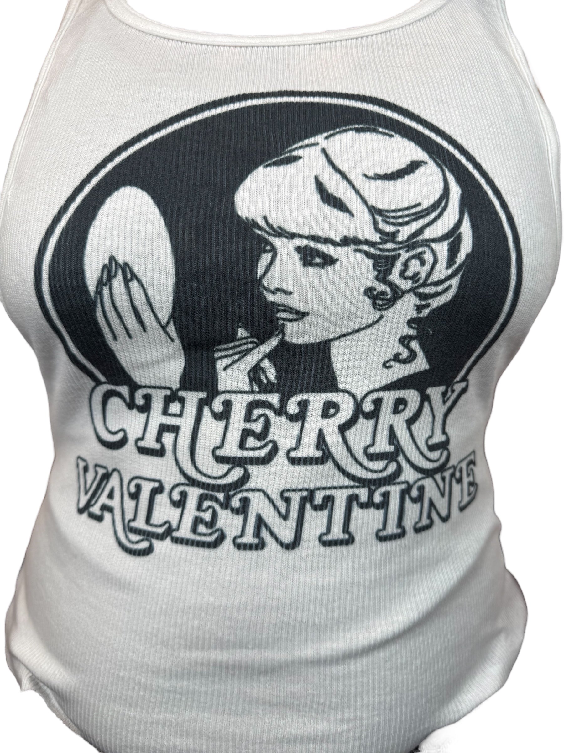 Custom hand printed design on ribbed tank. Can be long or cropped like photos shown.