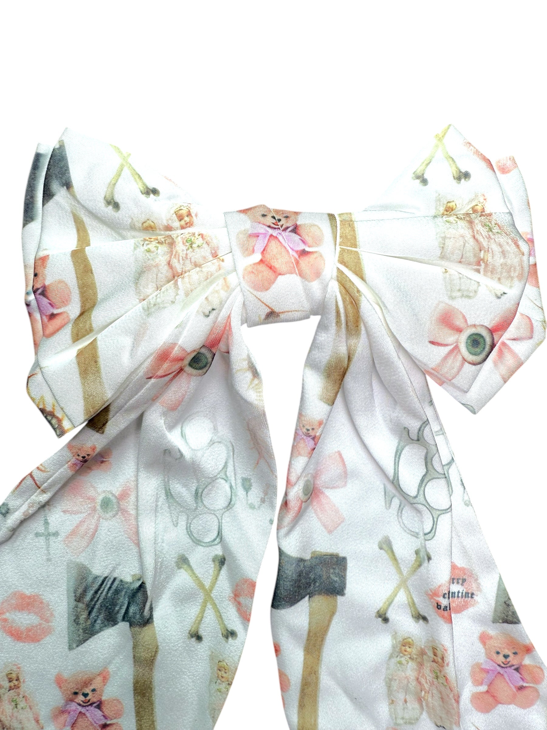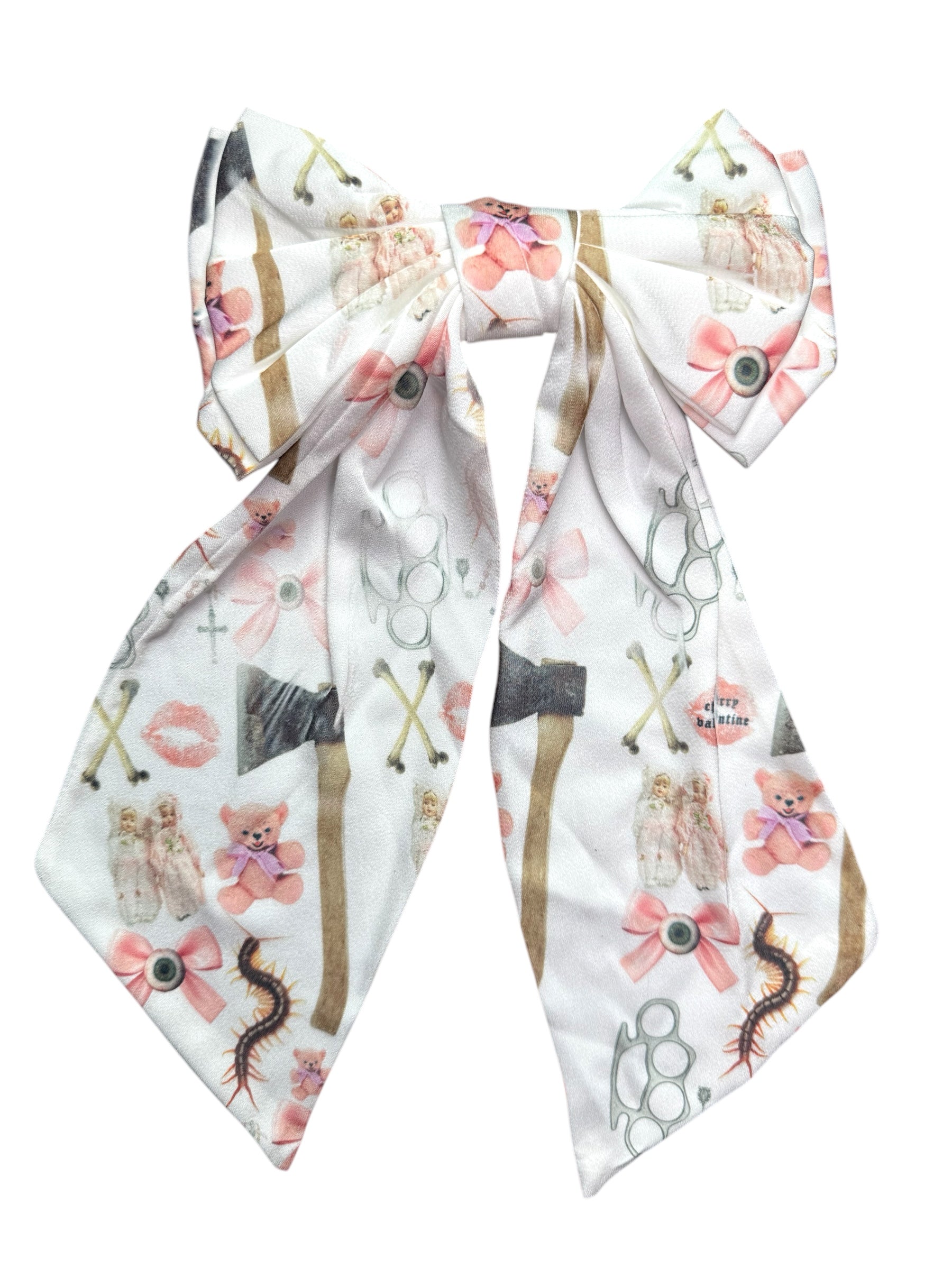 hand-printed design of white bow | clips into hair as pictured l ready to ship!