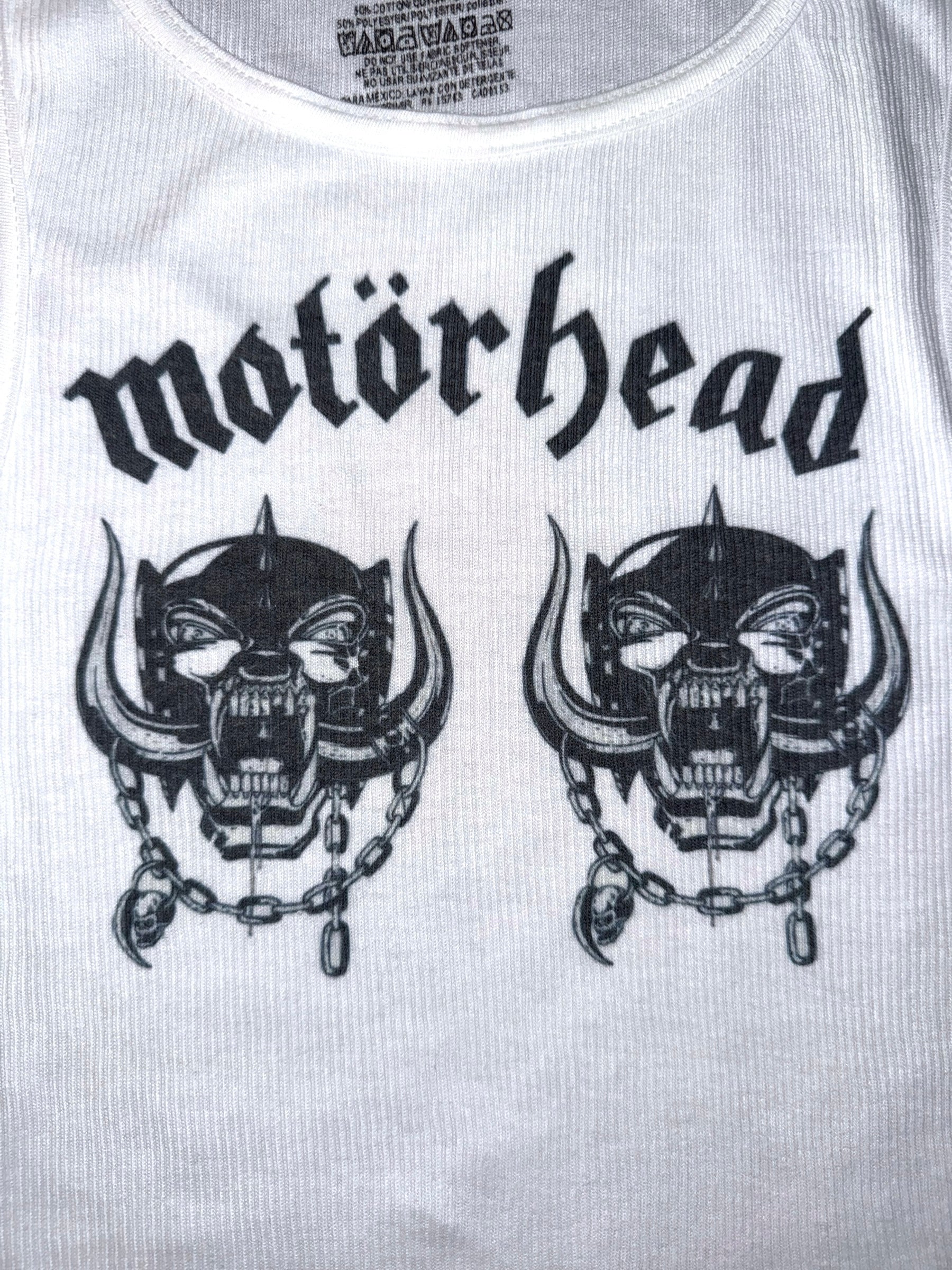 Custom hand printed design on ribbed tank. Can be long or cropped like photos shown.