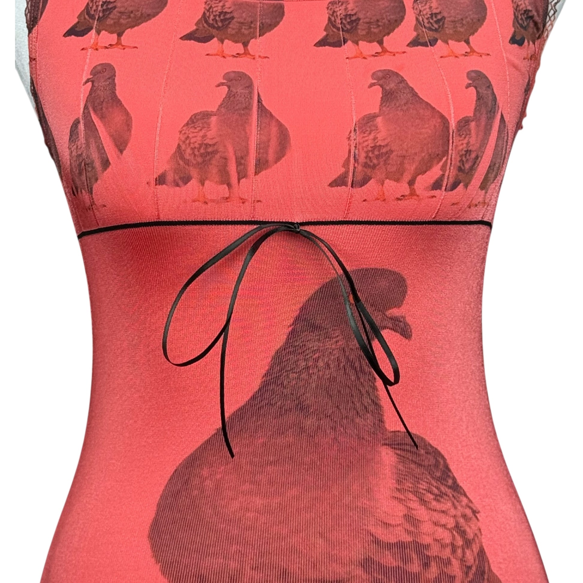 Upcycled mesh y2k tank top with hand printed design l ribbon detail l stretchy l this is a sample item due to condition of bottom hem being a little stretched out. This item is discounted at 50% off