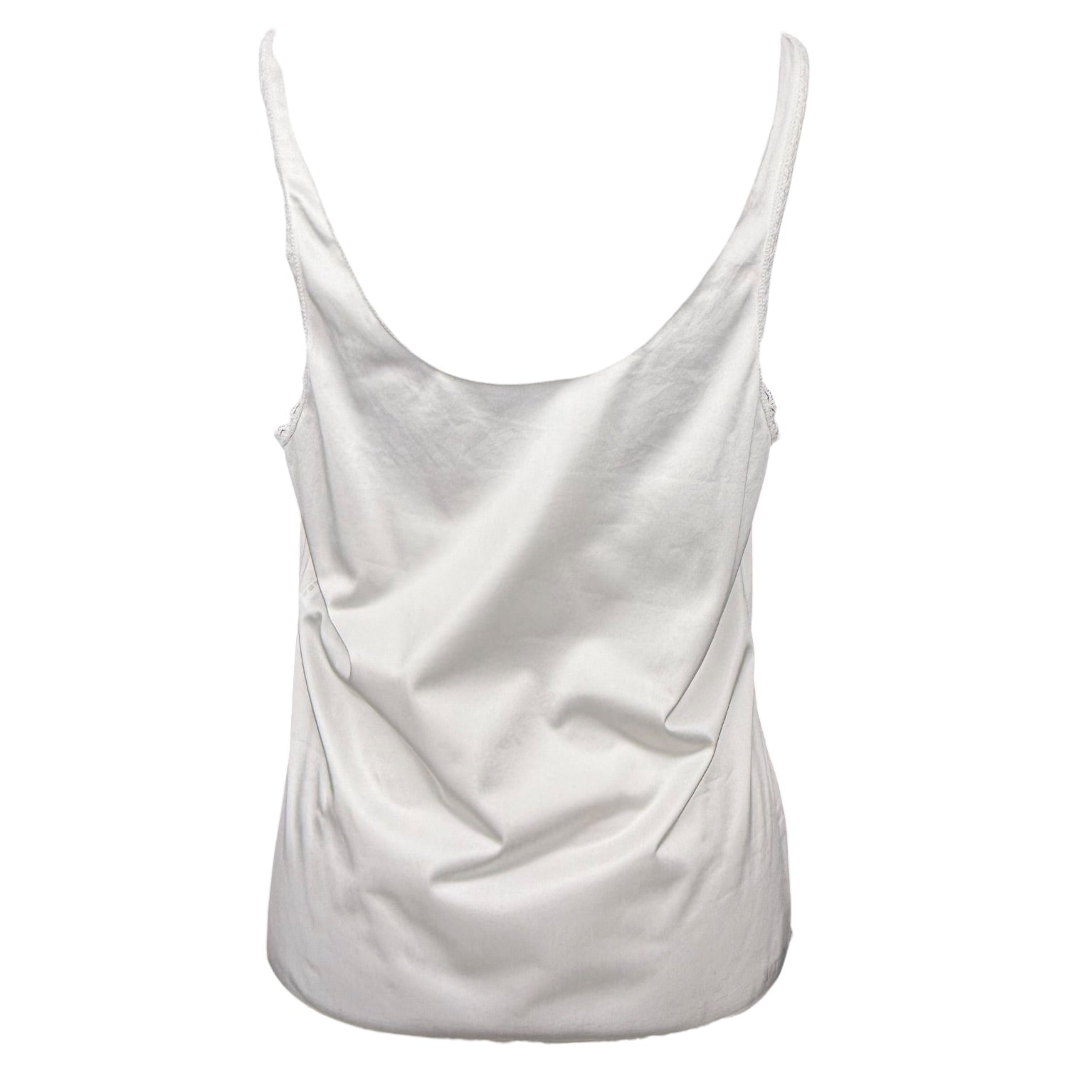 Upcycled slip tank top with hand printed design l lace details l sheer