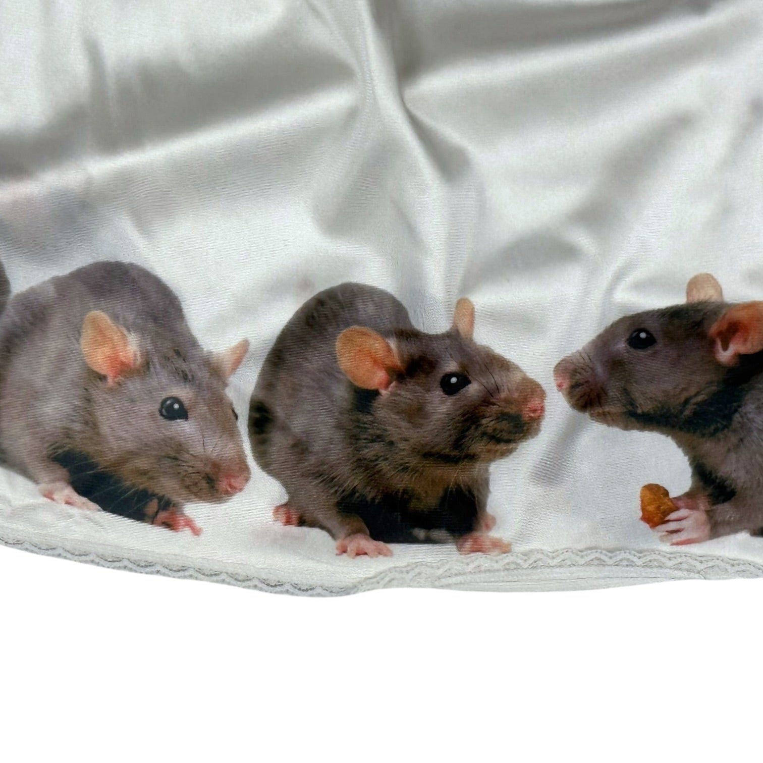 Vintage slip skirt with hand-printed design | sheer l elastic waistband | lace detail on hem l