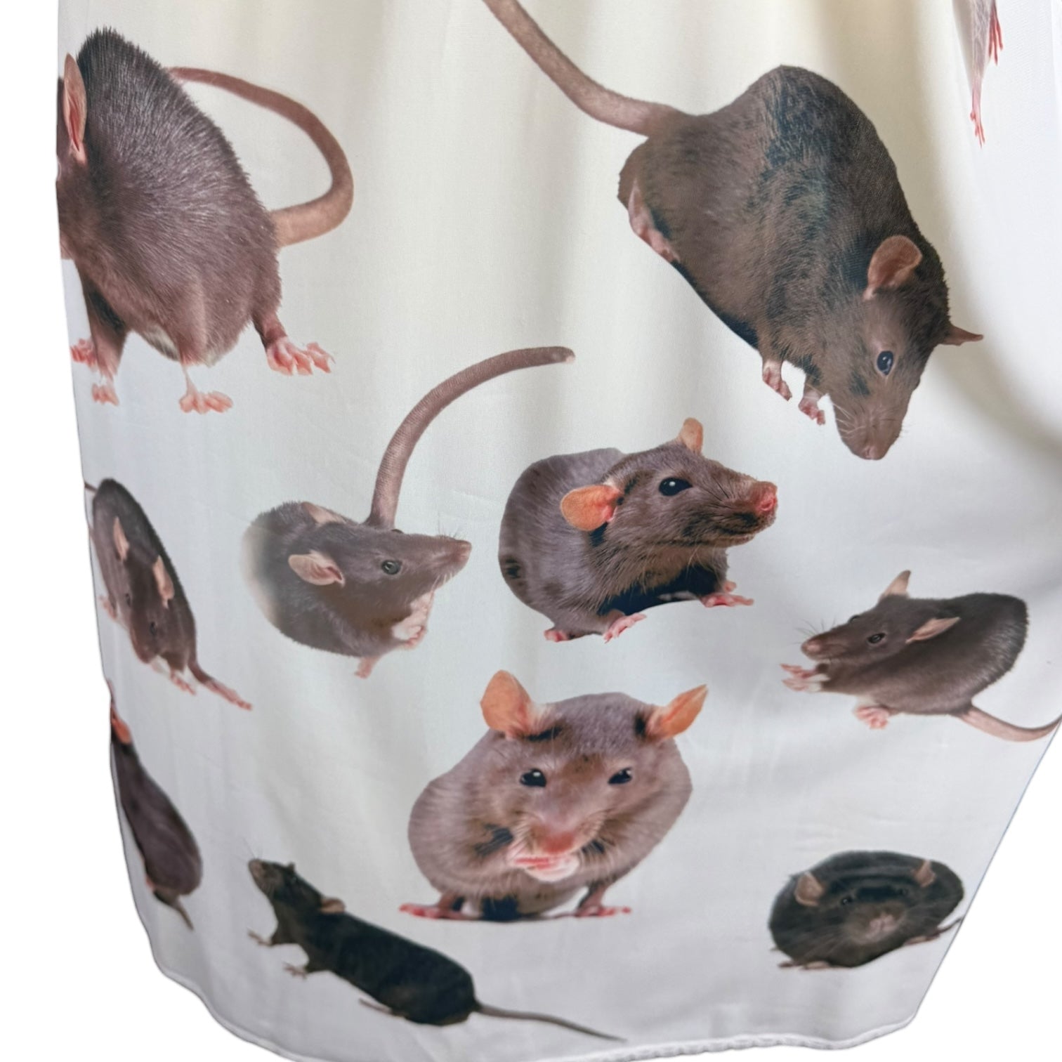 Upcycled white hand printed dress l adjustable strap l yellow discoloration due to printing, please check out photos