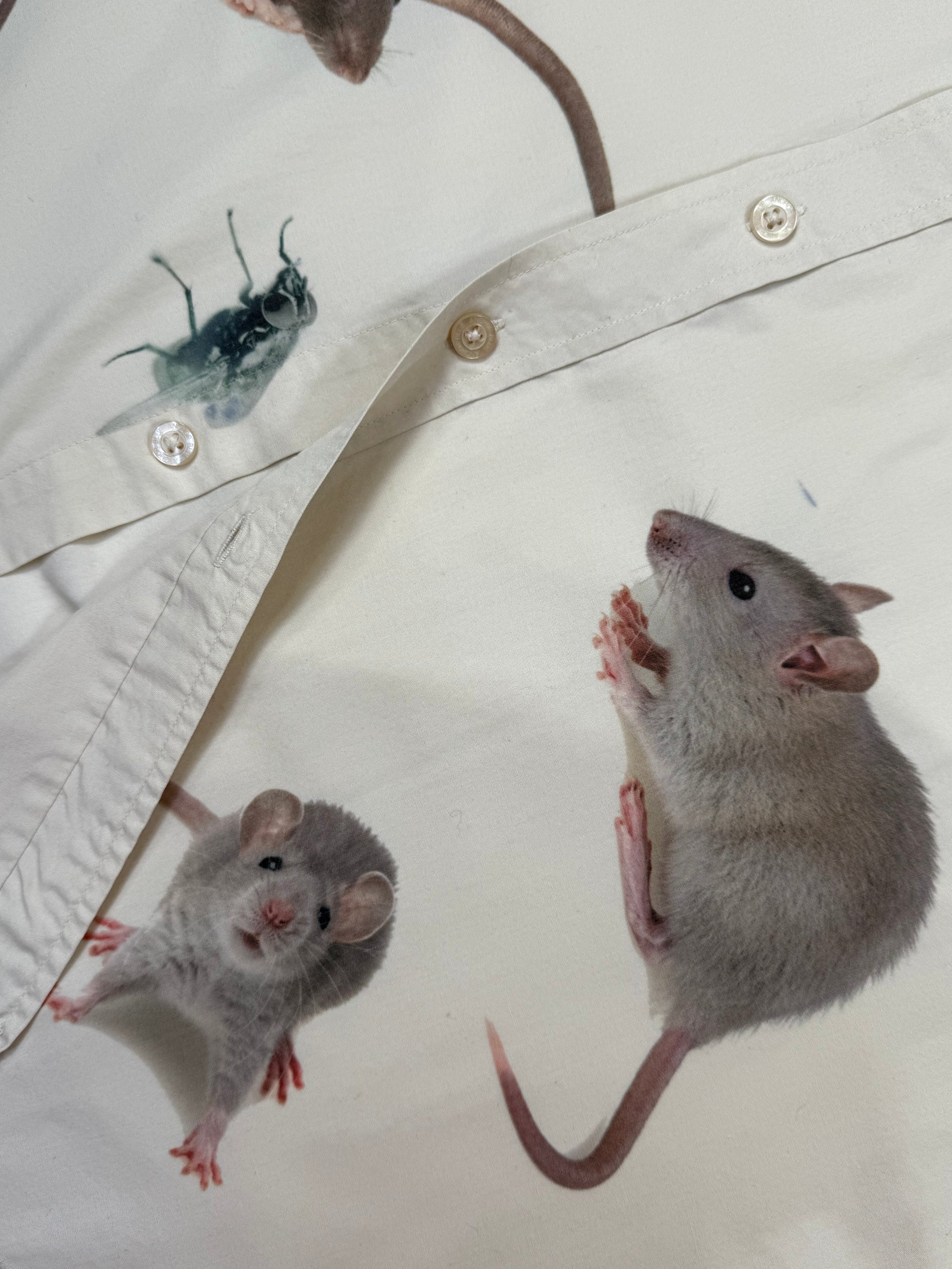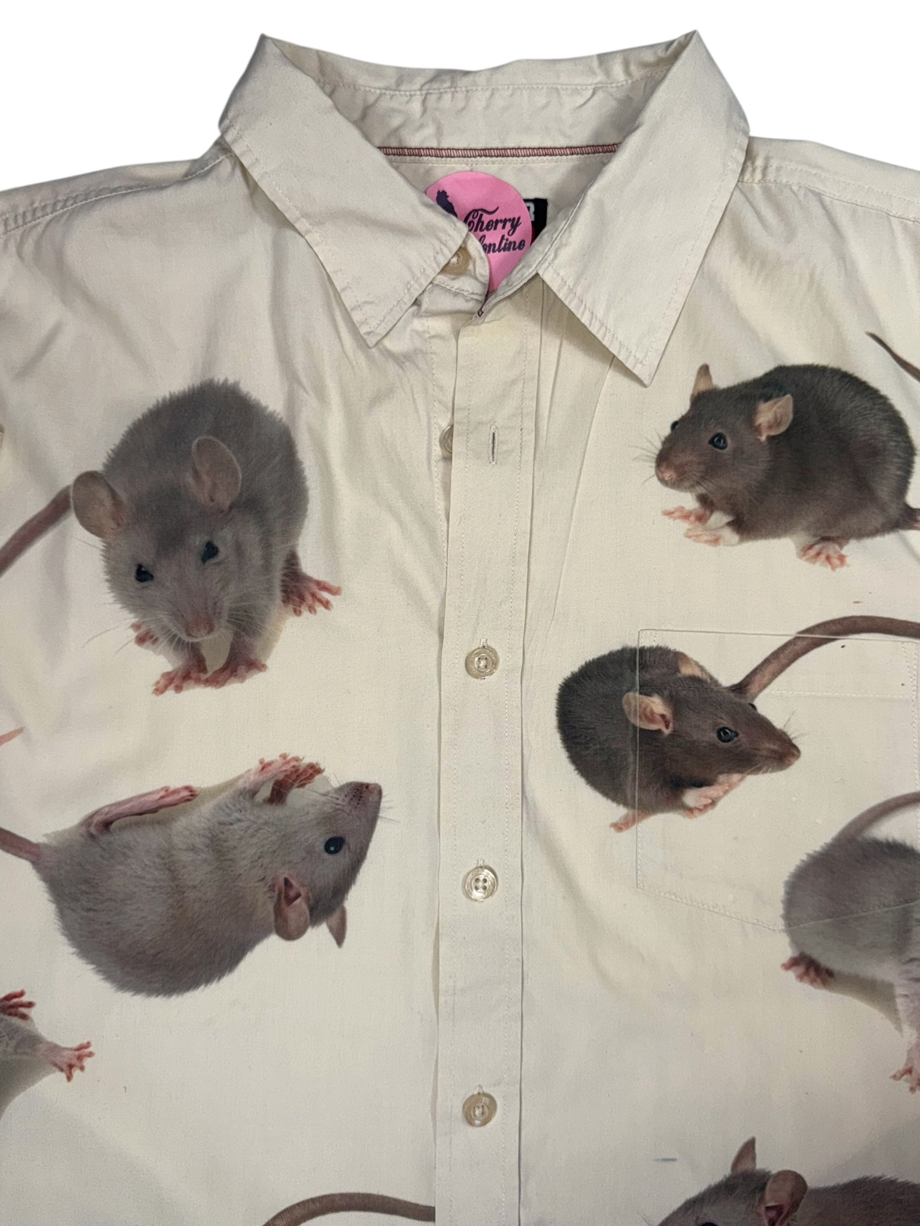 RATS BEIGE BUTTON UP SHORT SLEEVE - MENS LARGE