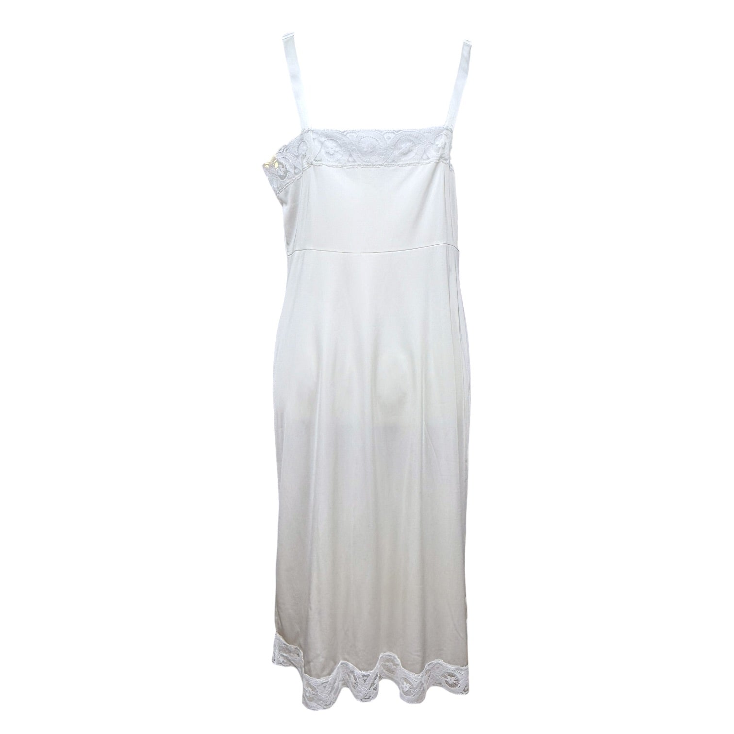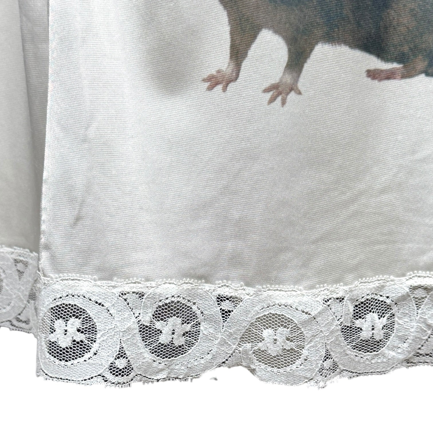 Upcycled slip dress with hand printed design l adjustable straps l lace on hems l sheer