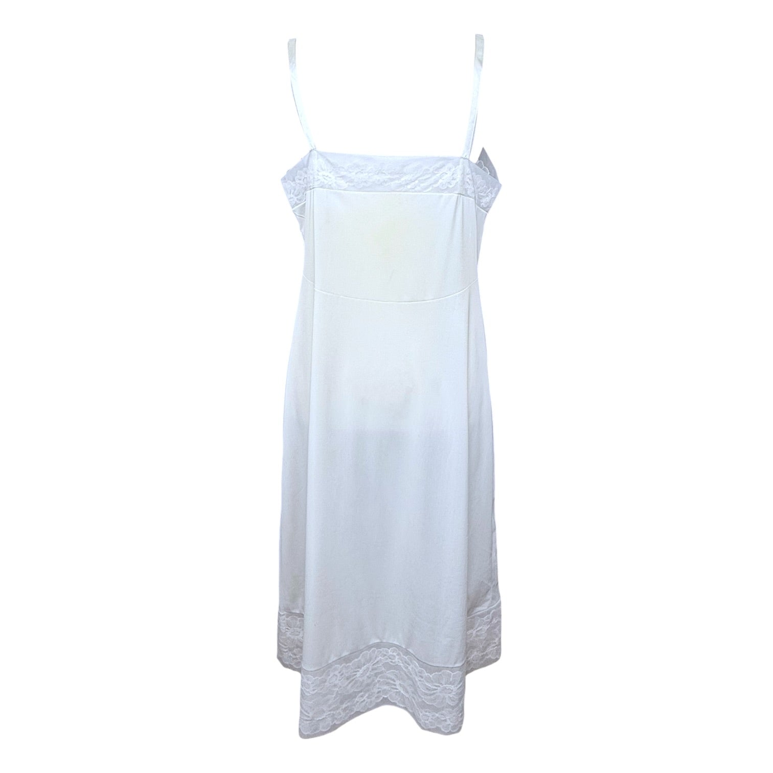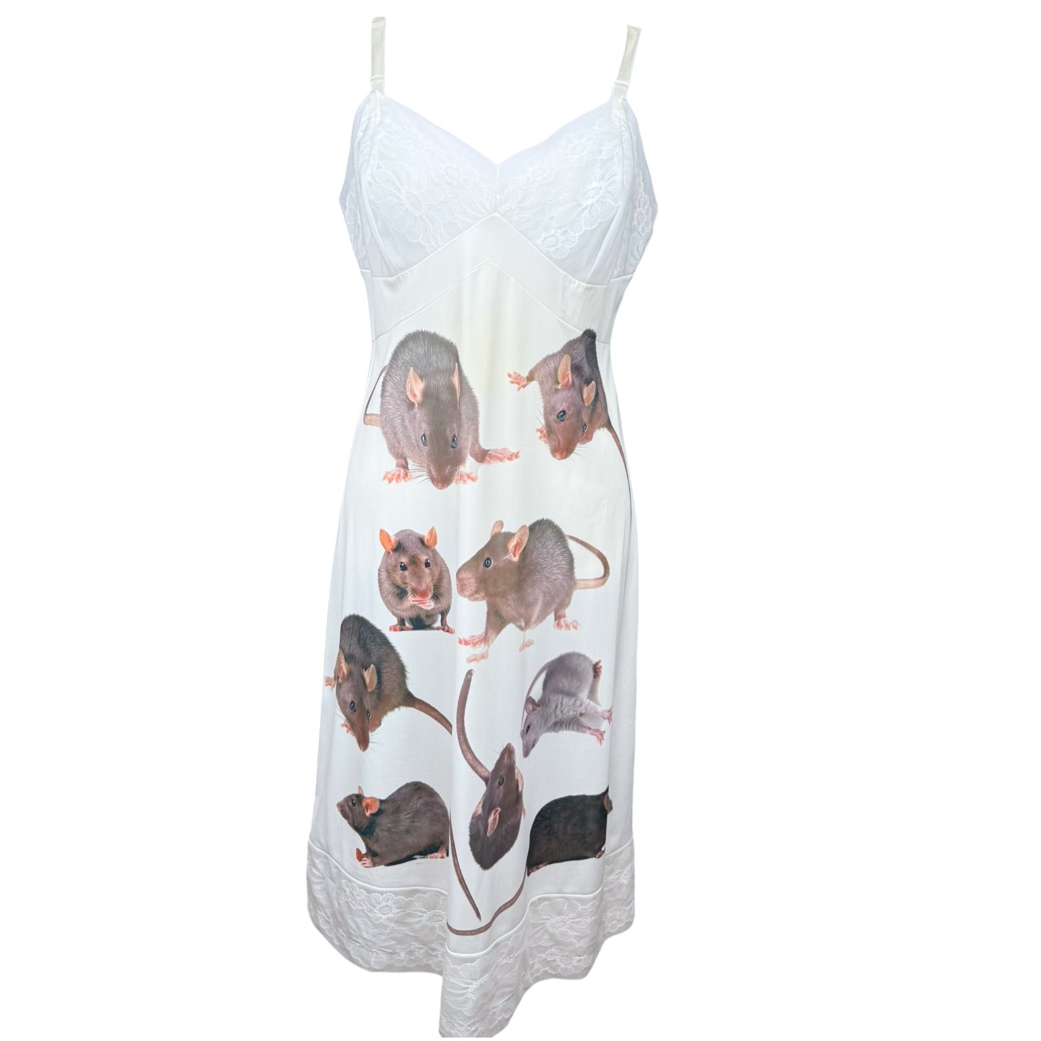 Upcycled slip dress with hand printed design l adjustable straps l lace on hems l sheer