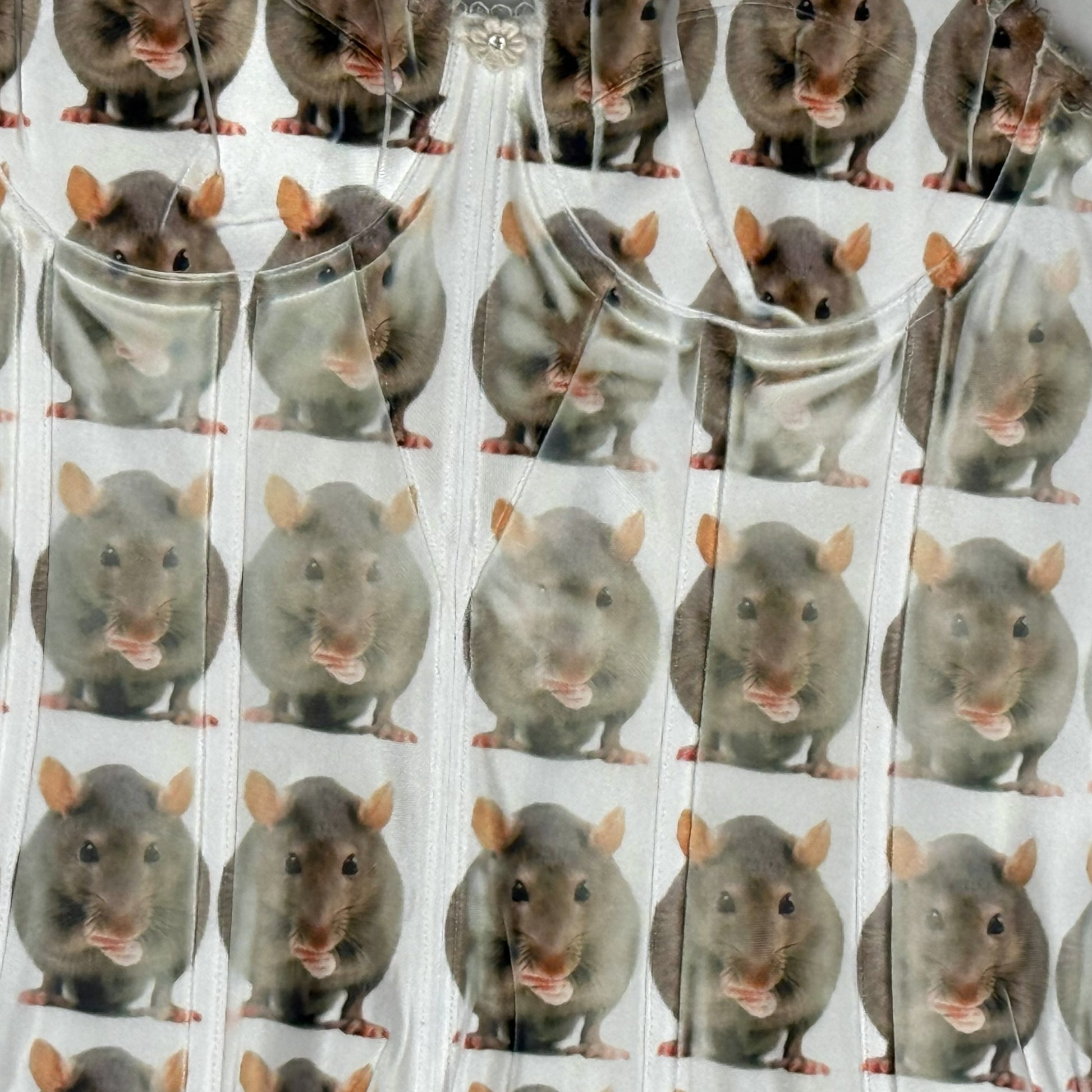 Upcycled corset top with hand printed design l clasp back l marked a 34B