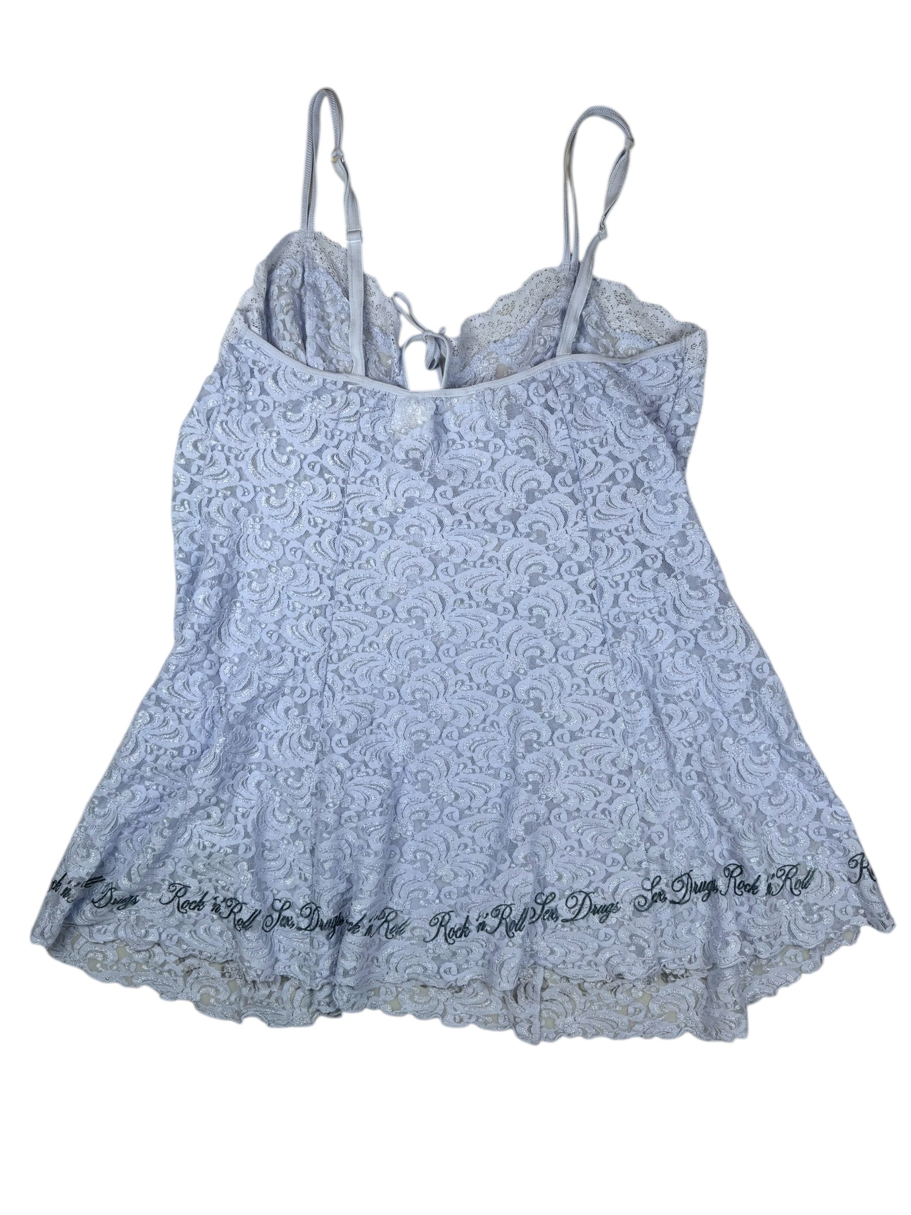 Upcycled blue hand printed lingerie nightie l stretchy!