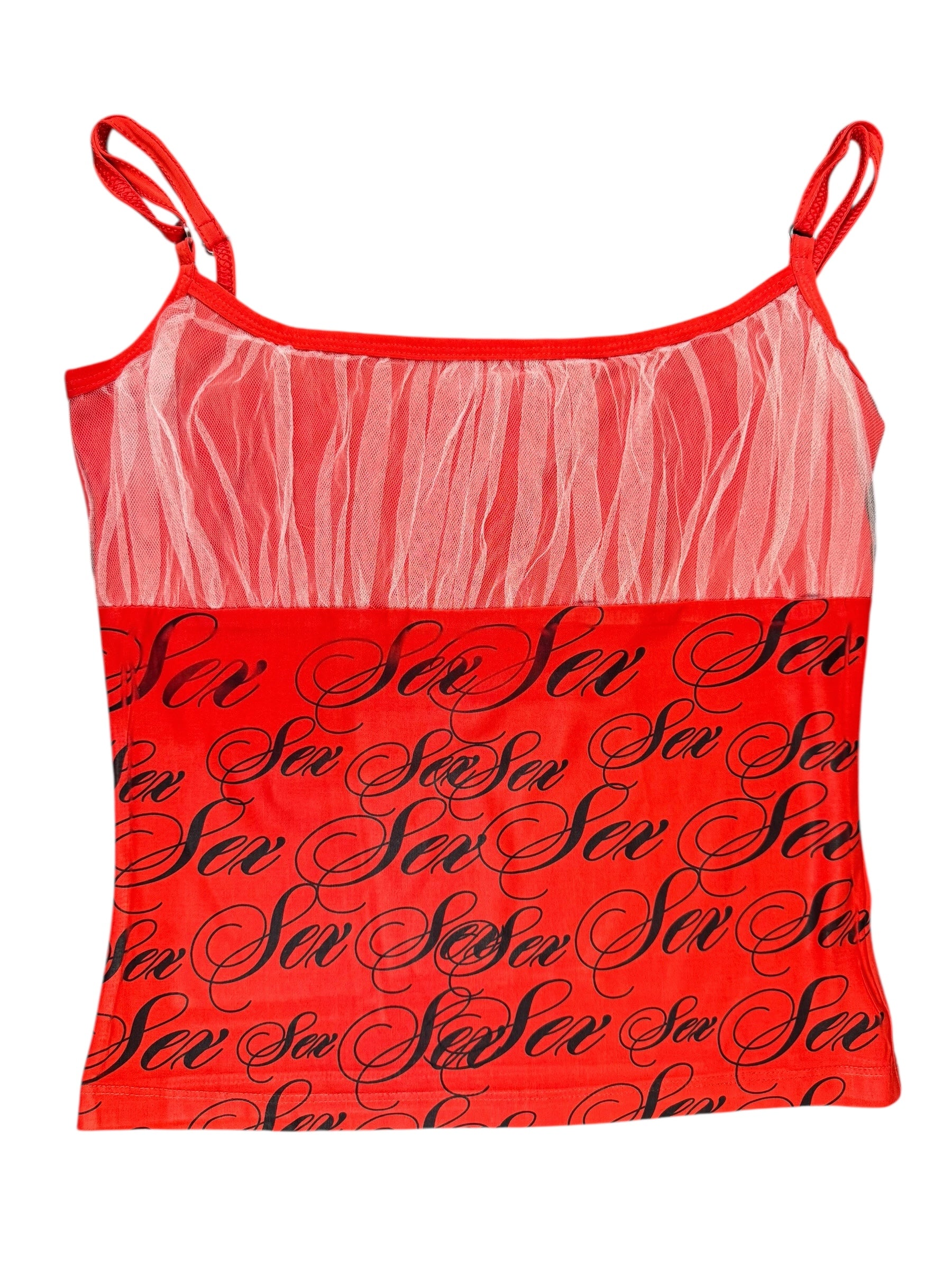 upcycled and hand printed on deadstock y2K tank top l marked a size medium l stretchyl adjustable straps
