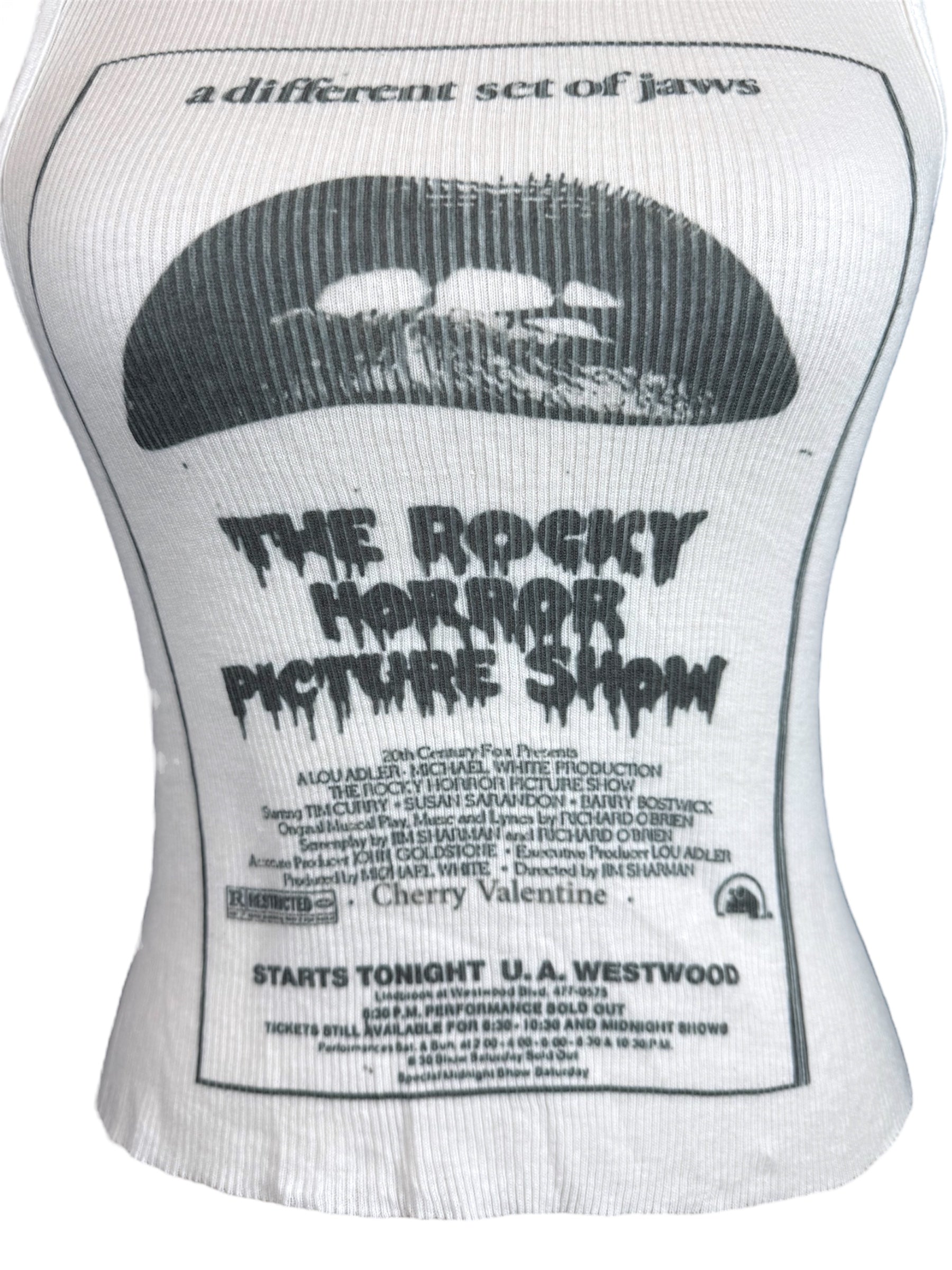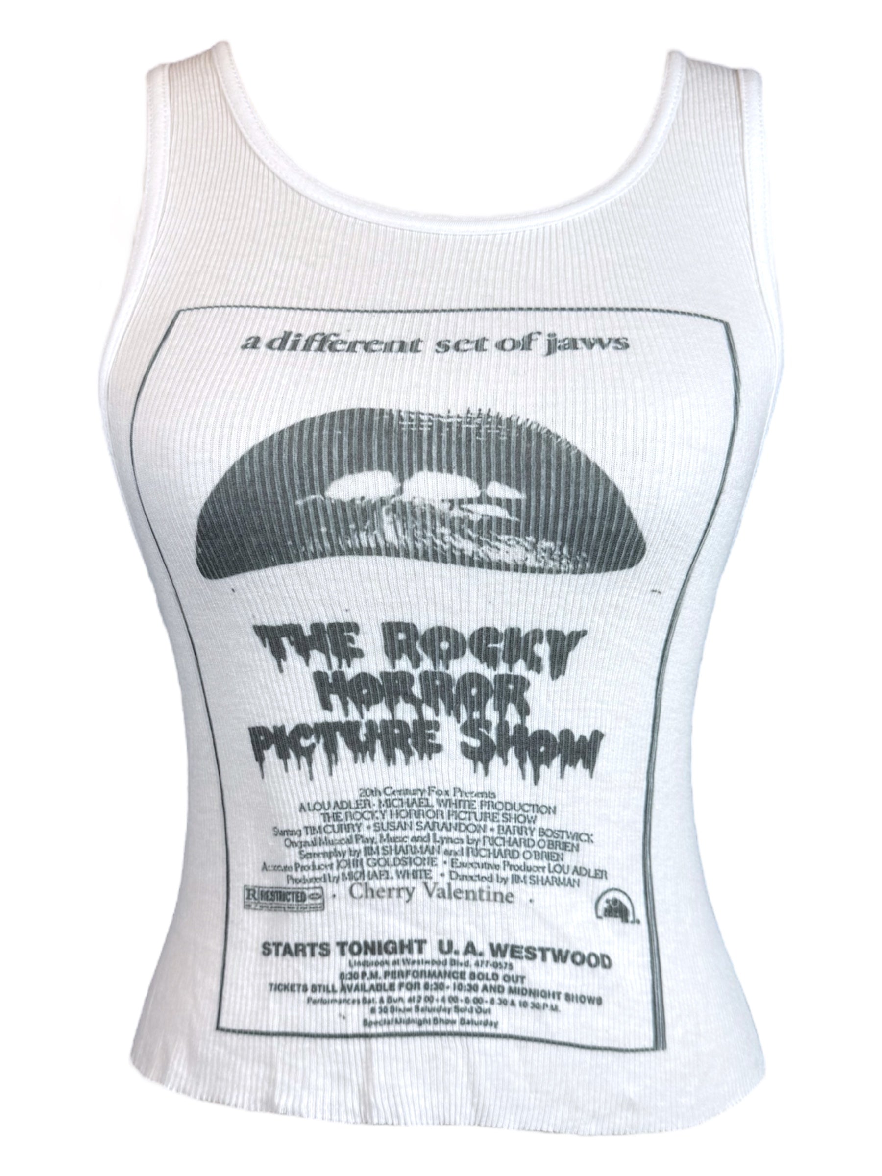 Custom hand printed design on ribbed tank. Can be long or cropped like photos shown.
