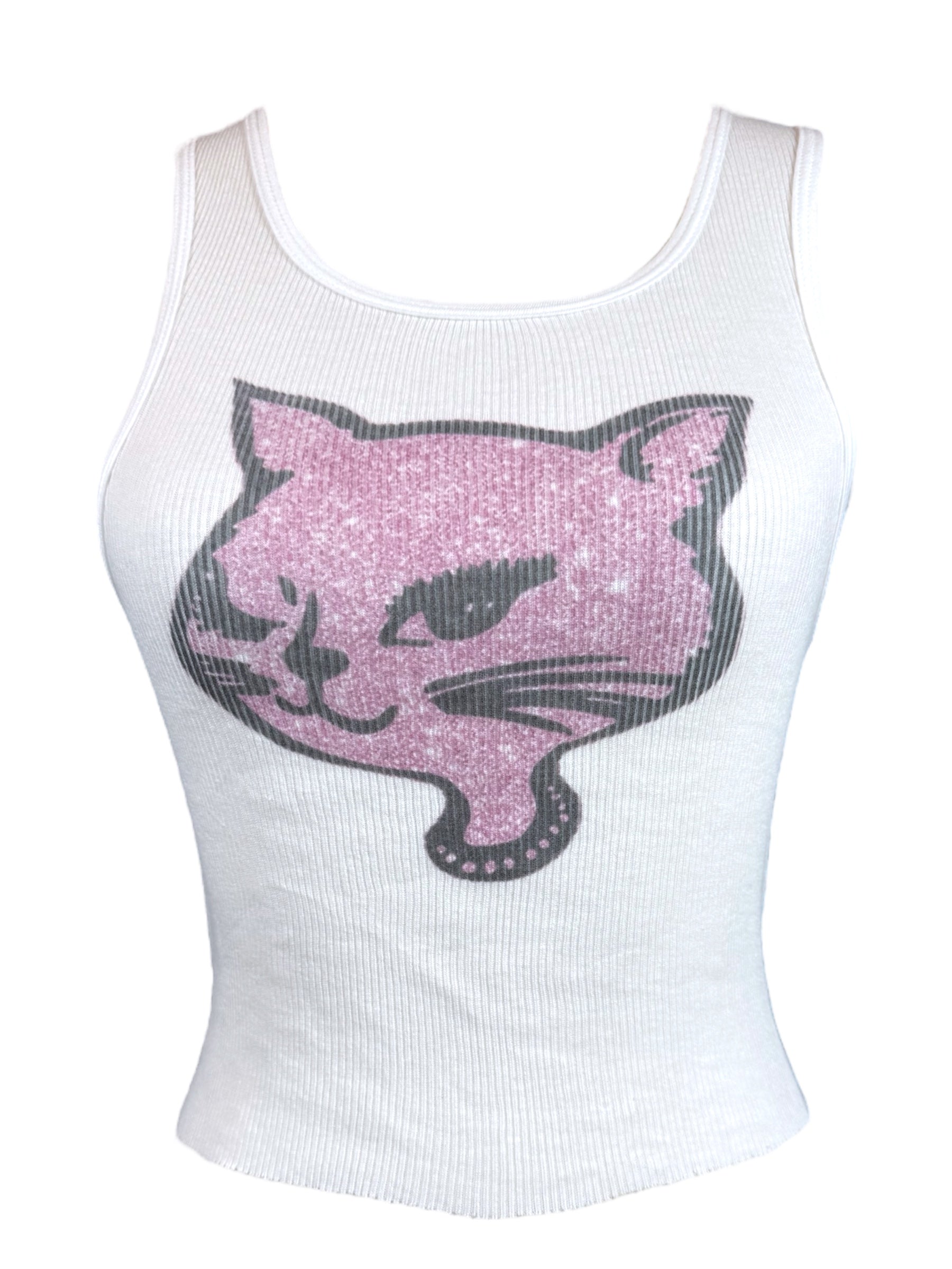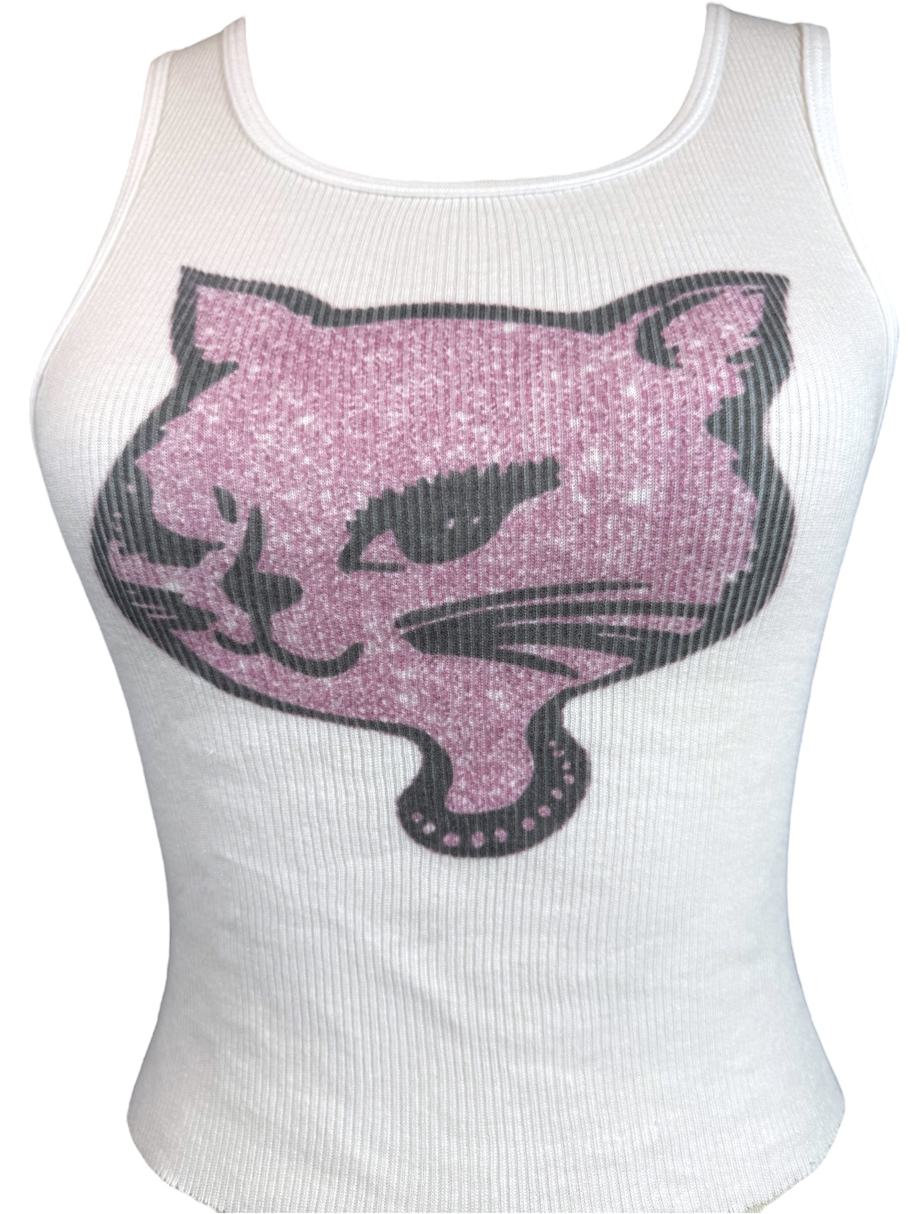Custom hand printed design on ribbed tank. Can be long or cropped like photos shown.
