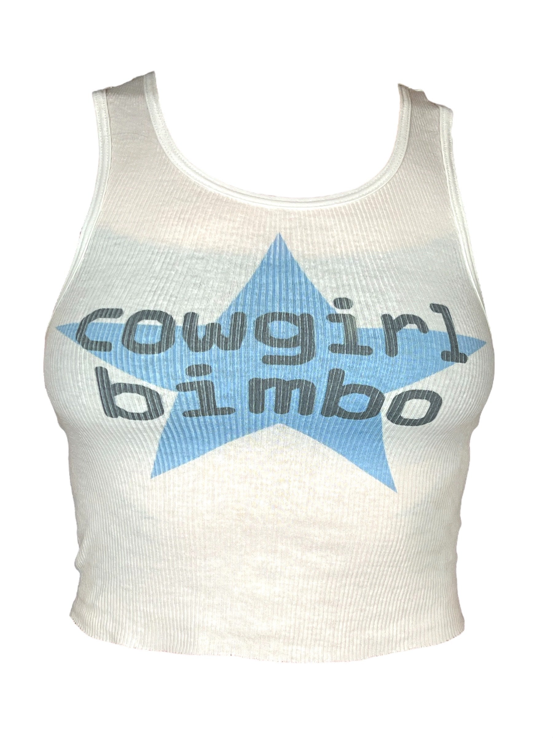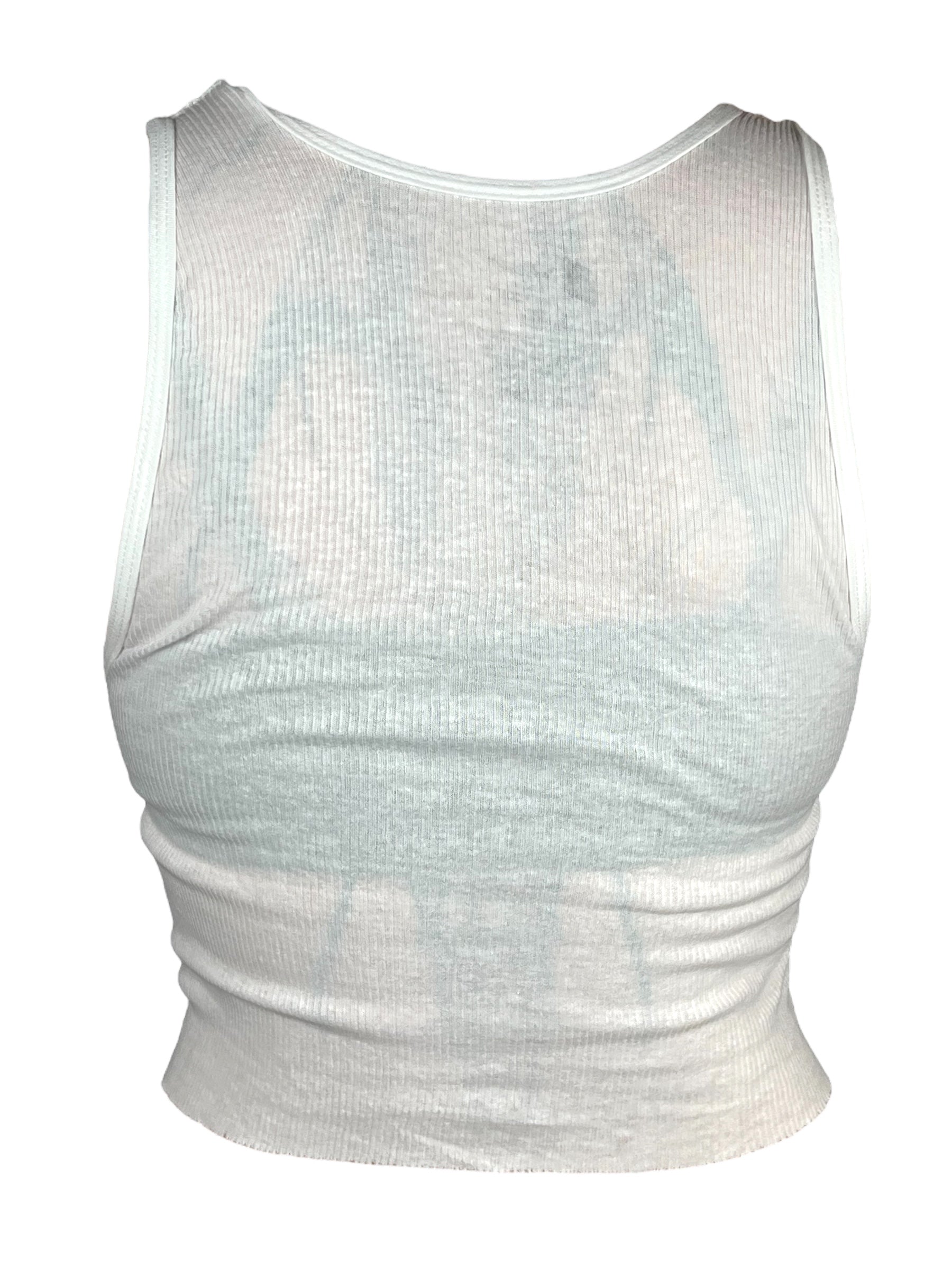 Custom hand printed design on ribbed tank. Can be long or cropped like photos shown.
